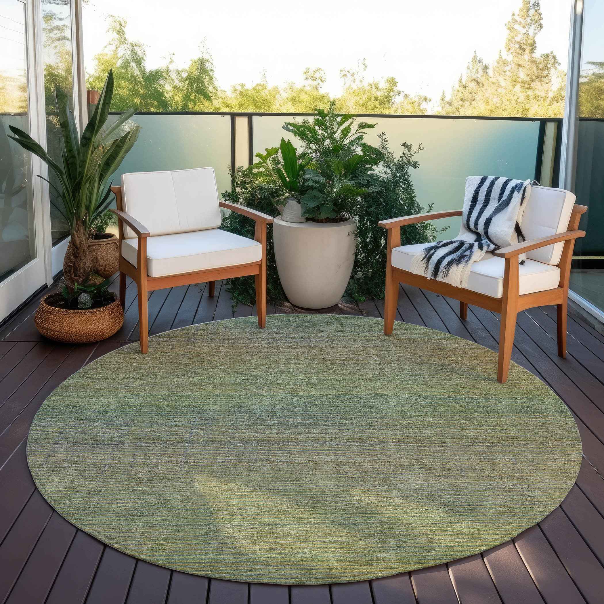 8' Fern Green Round Striped Washable Indoor Outdoor Area Rug