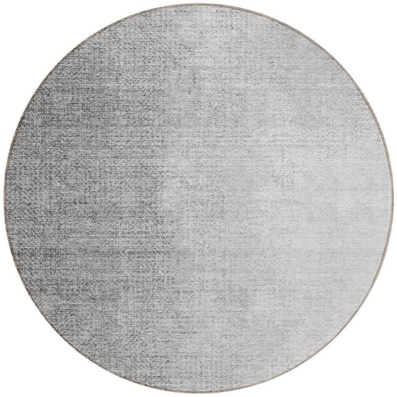 8' Gray And Silver Round Abstract Washable Indoor Outdoor Area Rug
