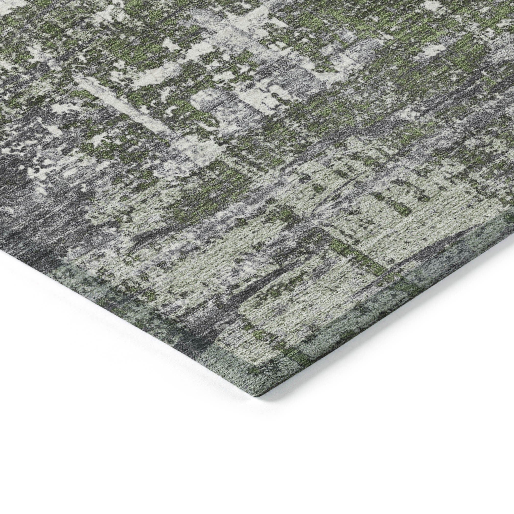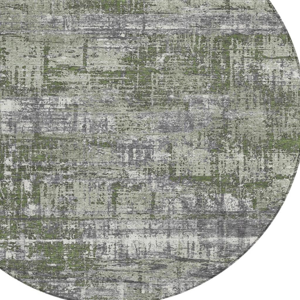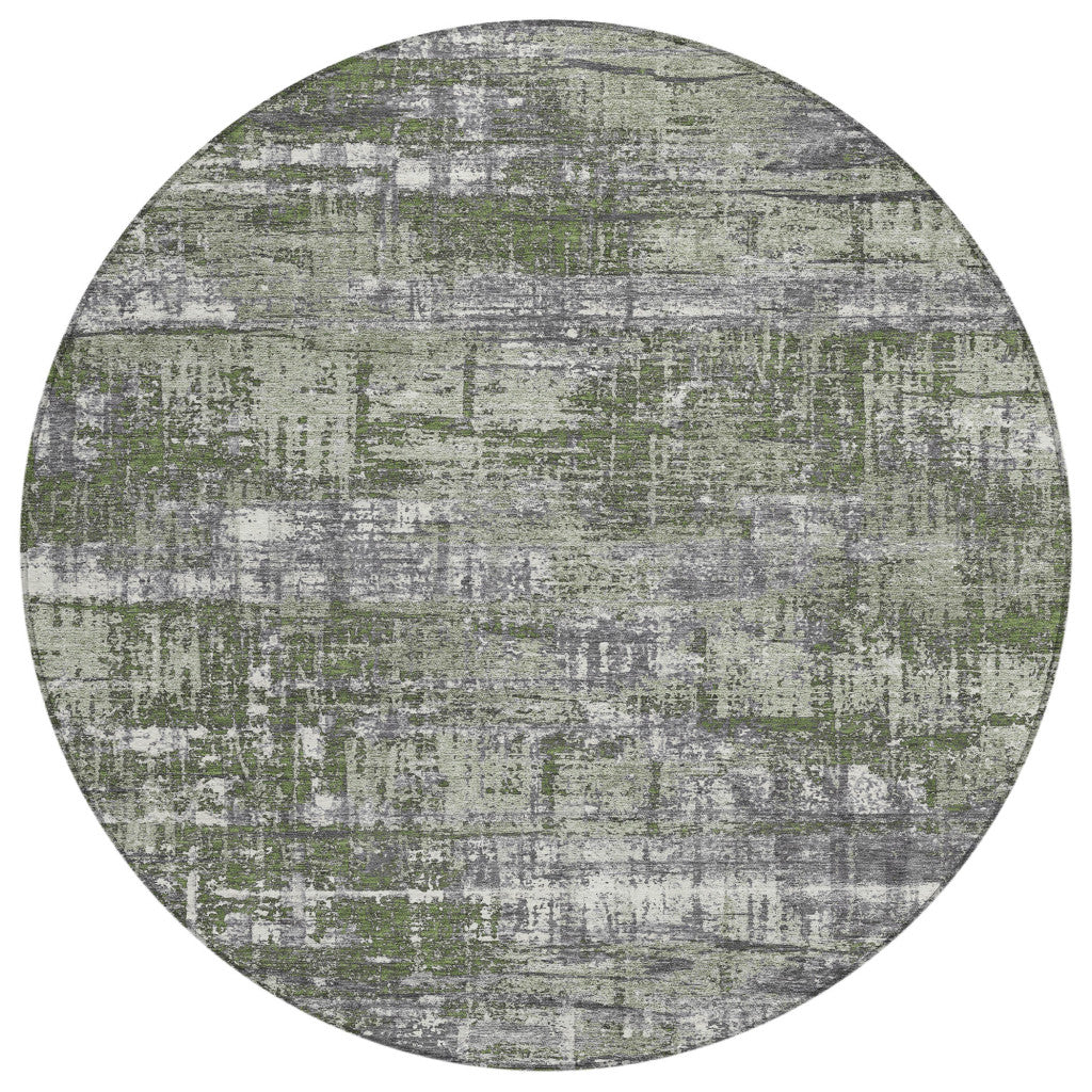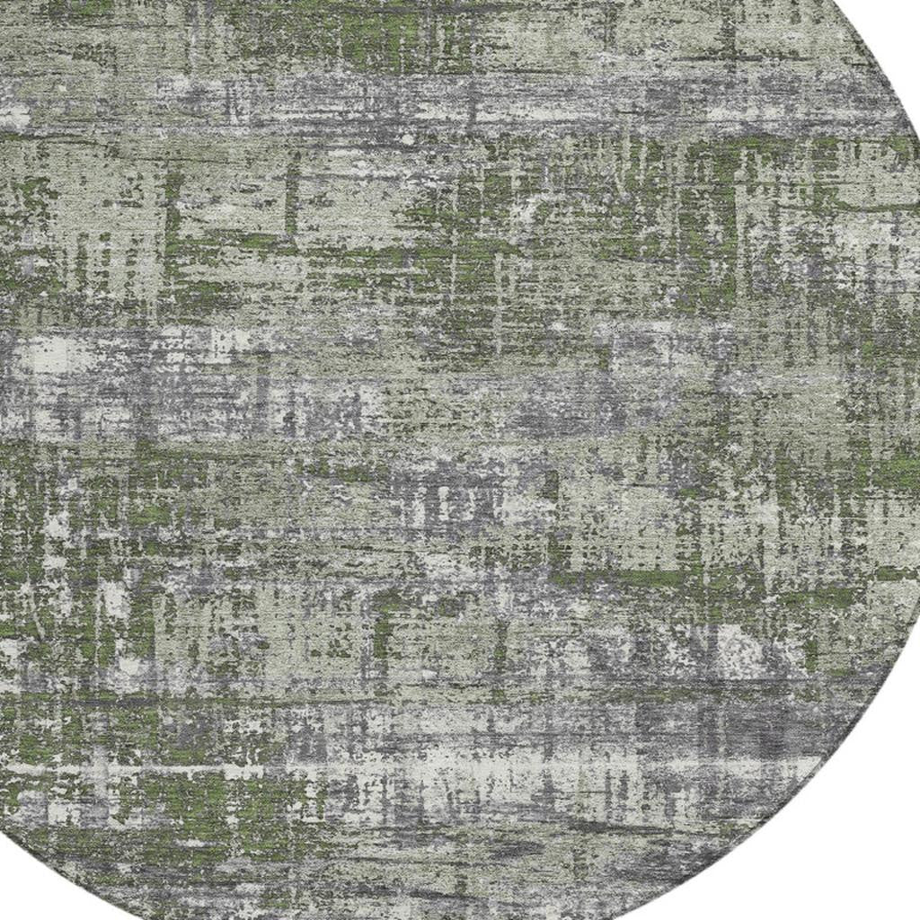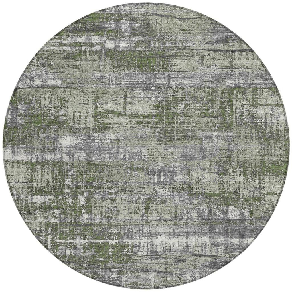 8' Olive Green And Ivory Round Geometric Washable Indoor Outdoor Area Rug