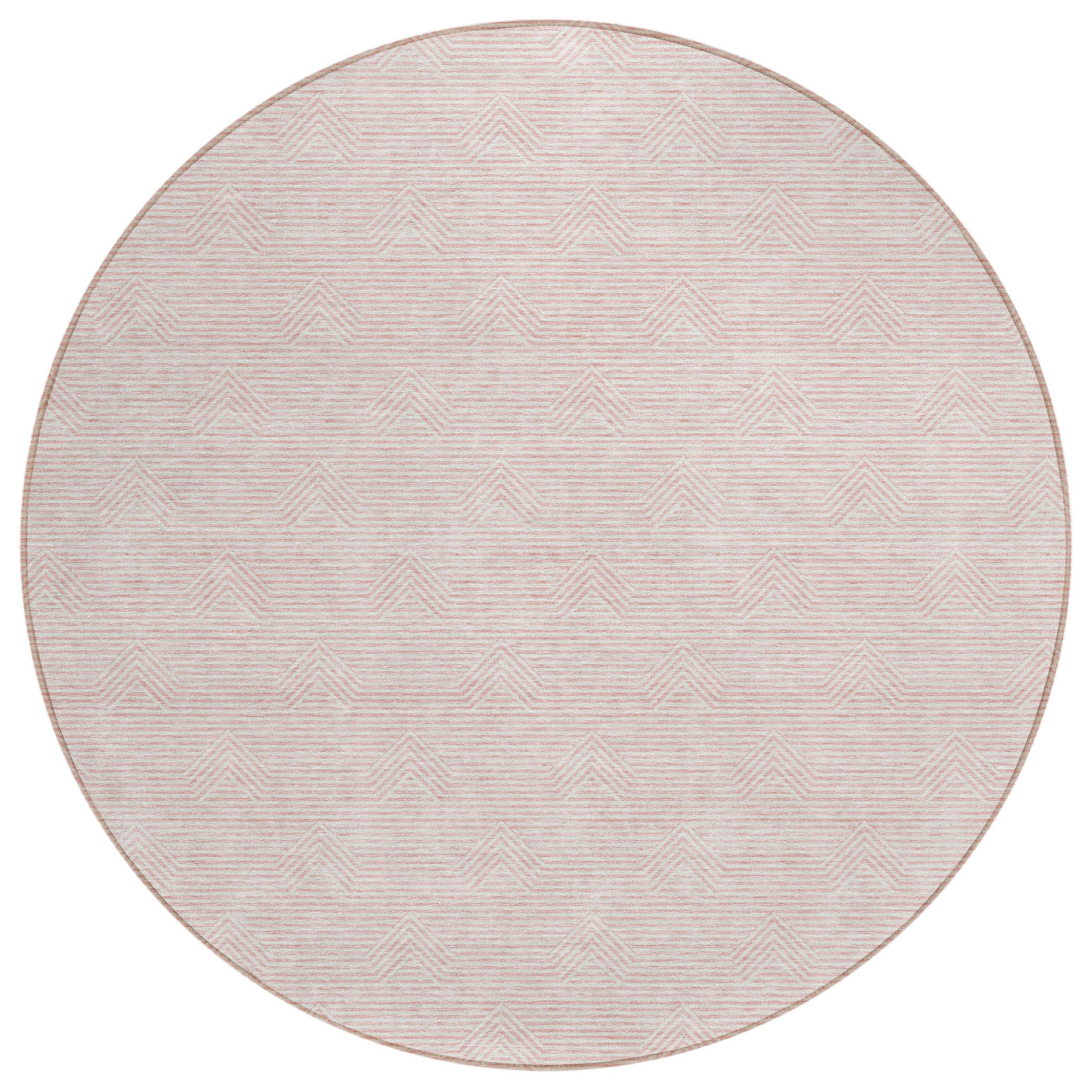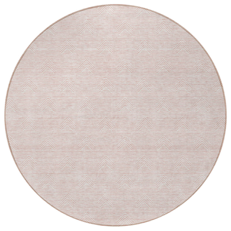 8' Pink And Gray Round Geometric Washable Indoor Outdoor Area Rug