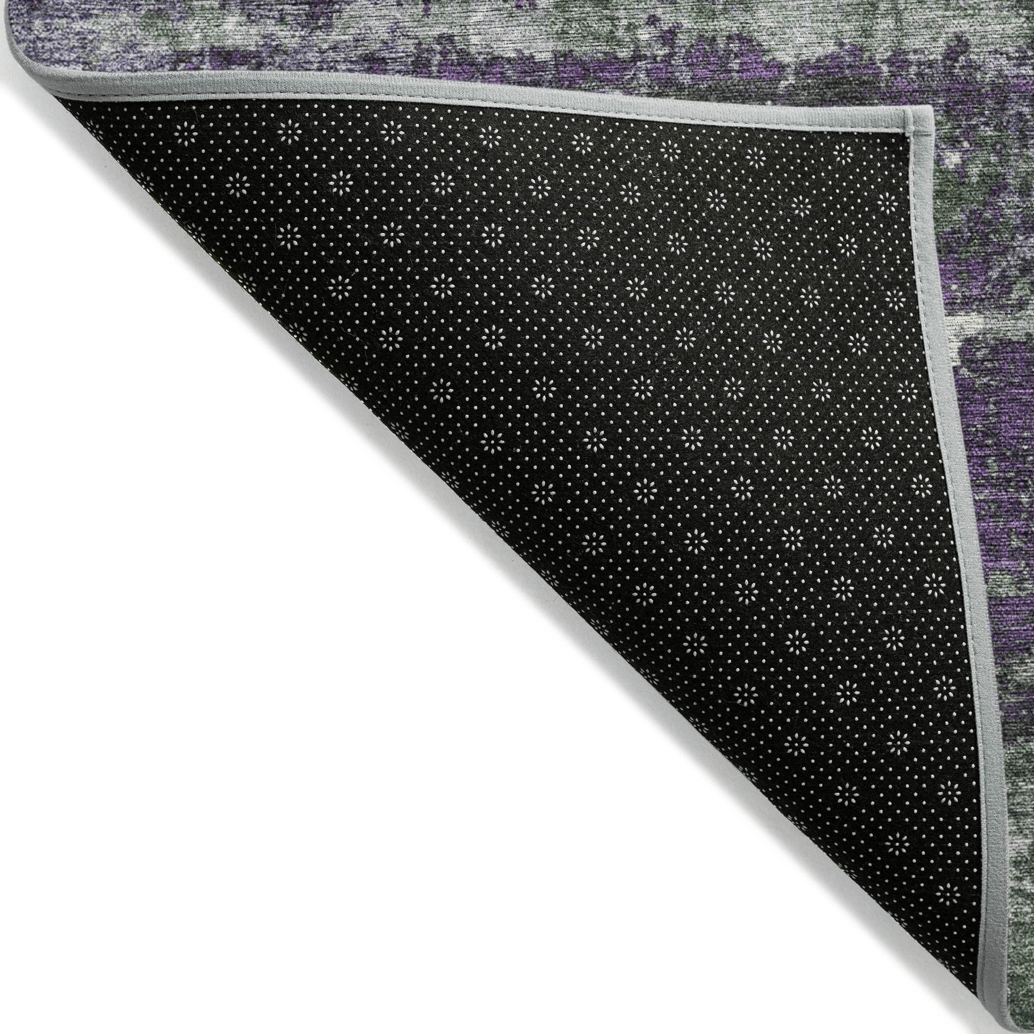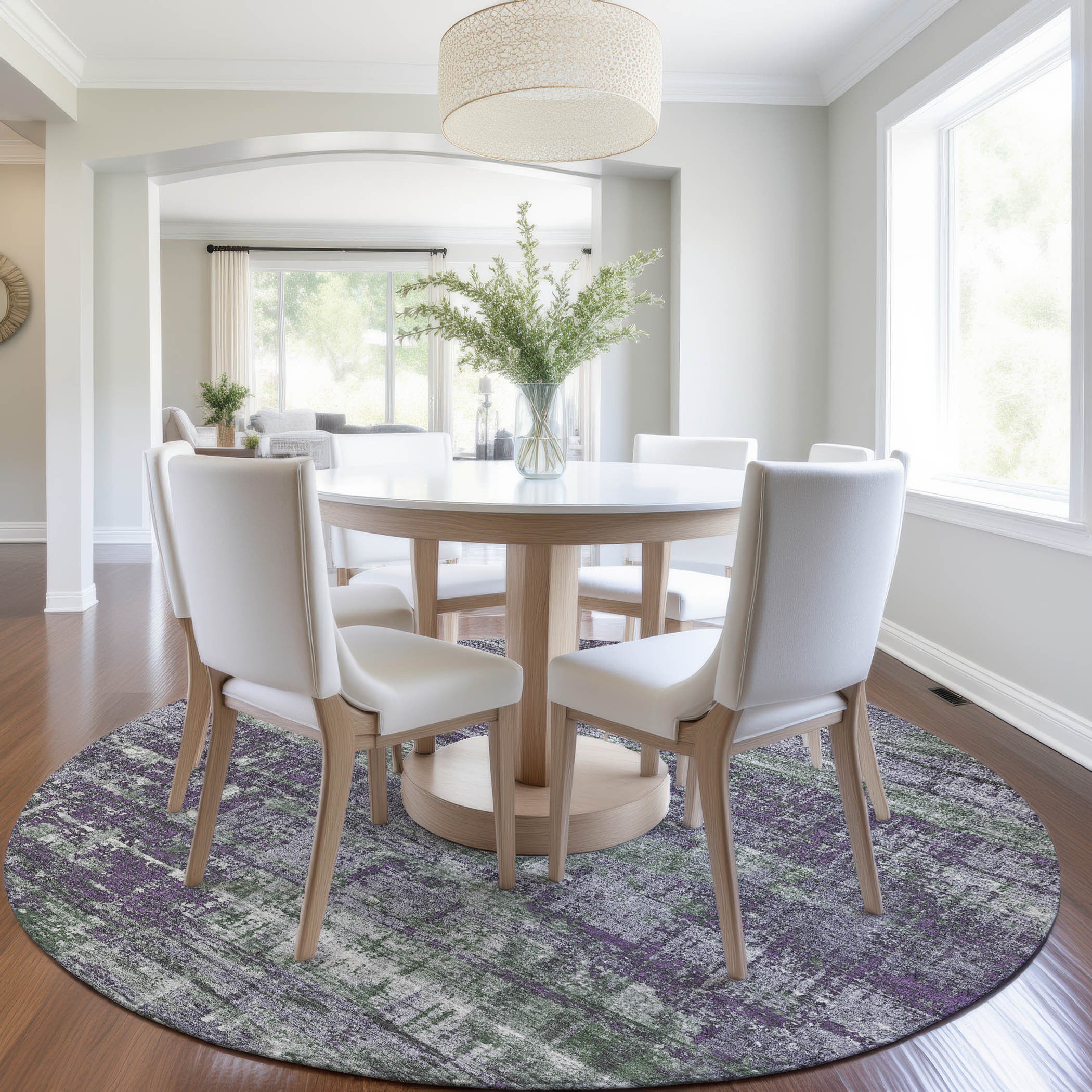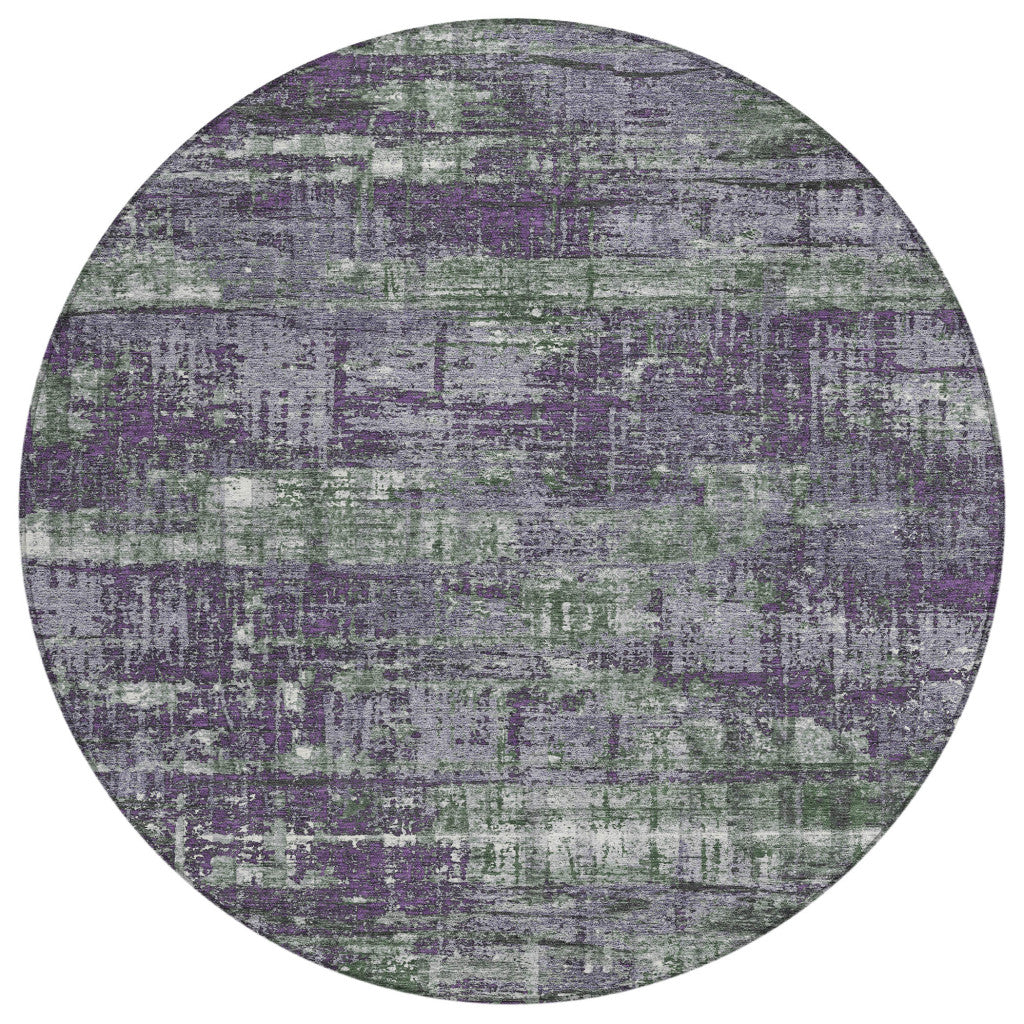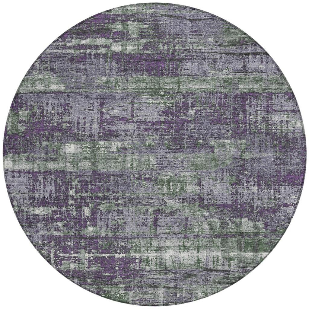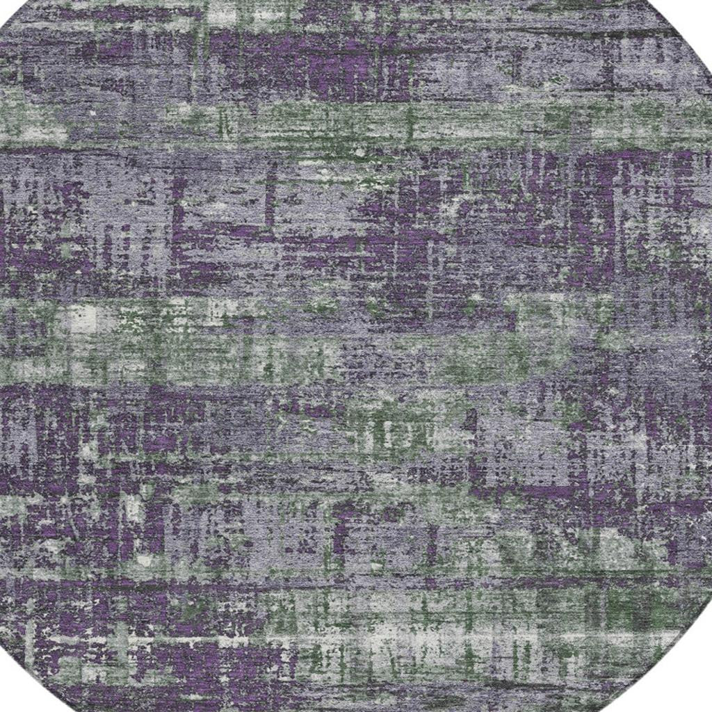 8' Purple And Green Round Geometric Washable Indoor Outdoor Area Rug