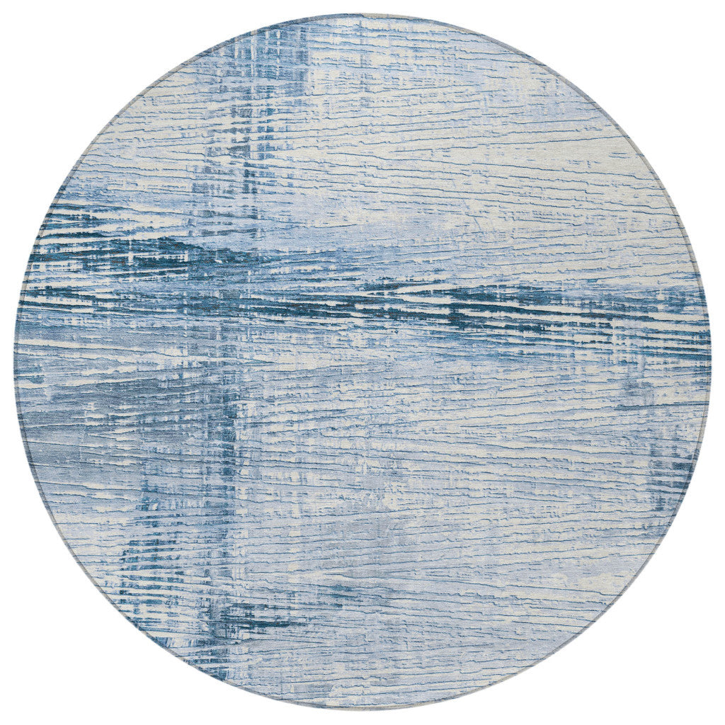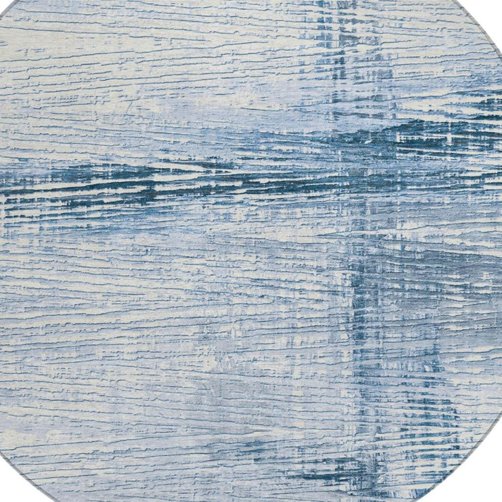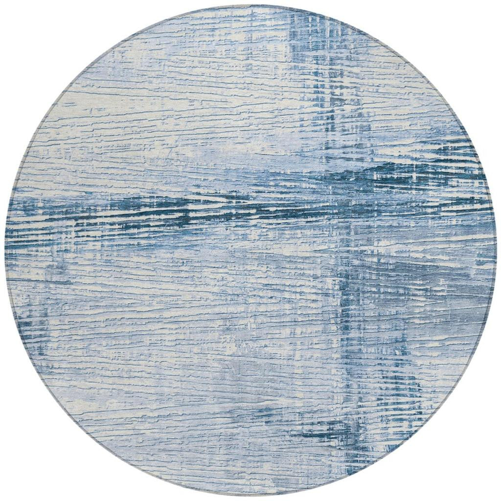 8' Sky Blue And Ivory Round Striped Washable Indoor Outdoor Area Rug