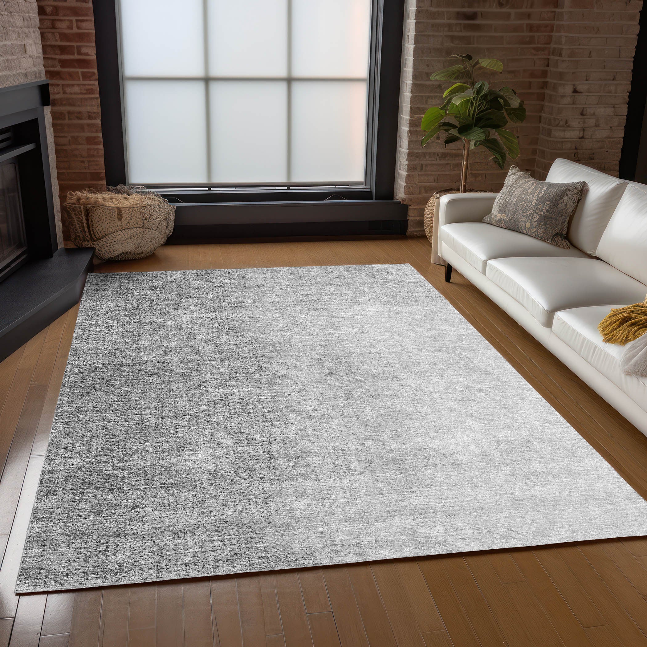 8' X 10' Gray And Silver Abstract Washable Indoor Outdoor Area Rug