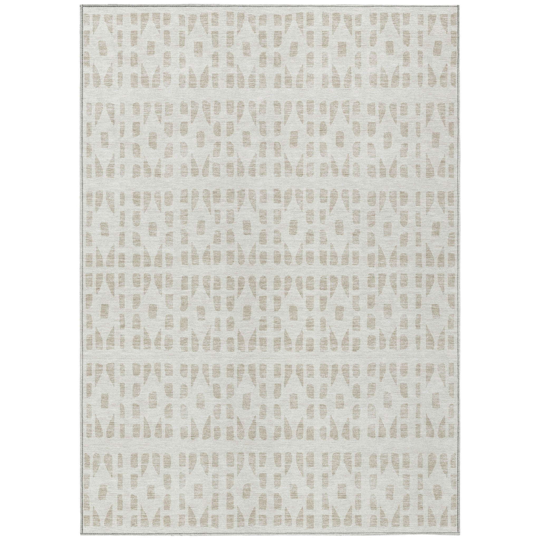 8' X 10' Ivory And Beige Geometric Washable Indoor Outdoor Area Rug