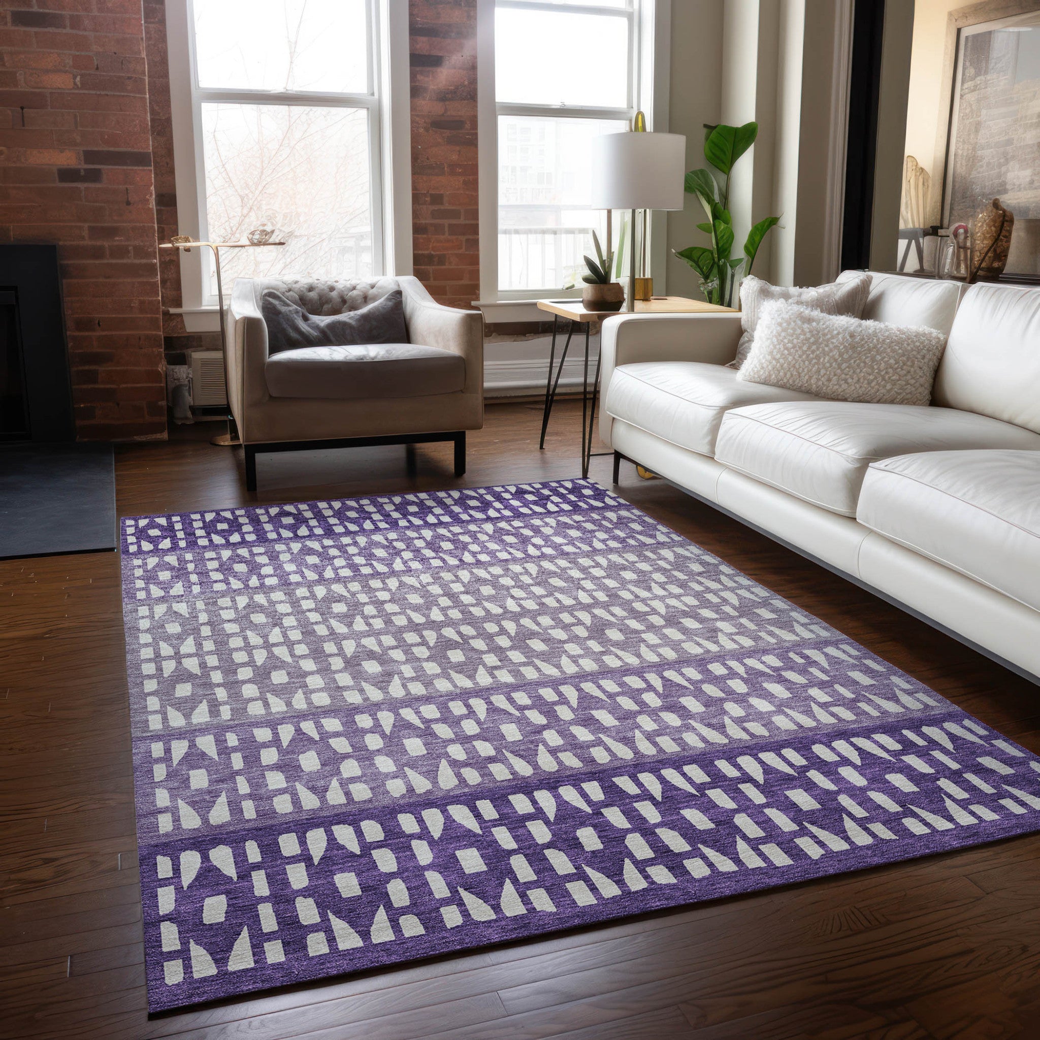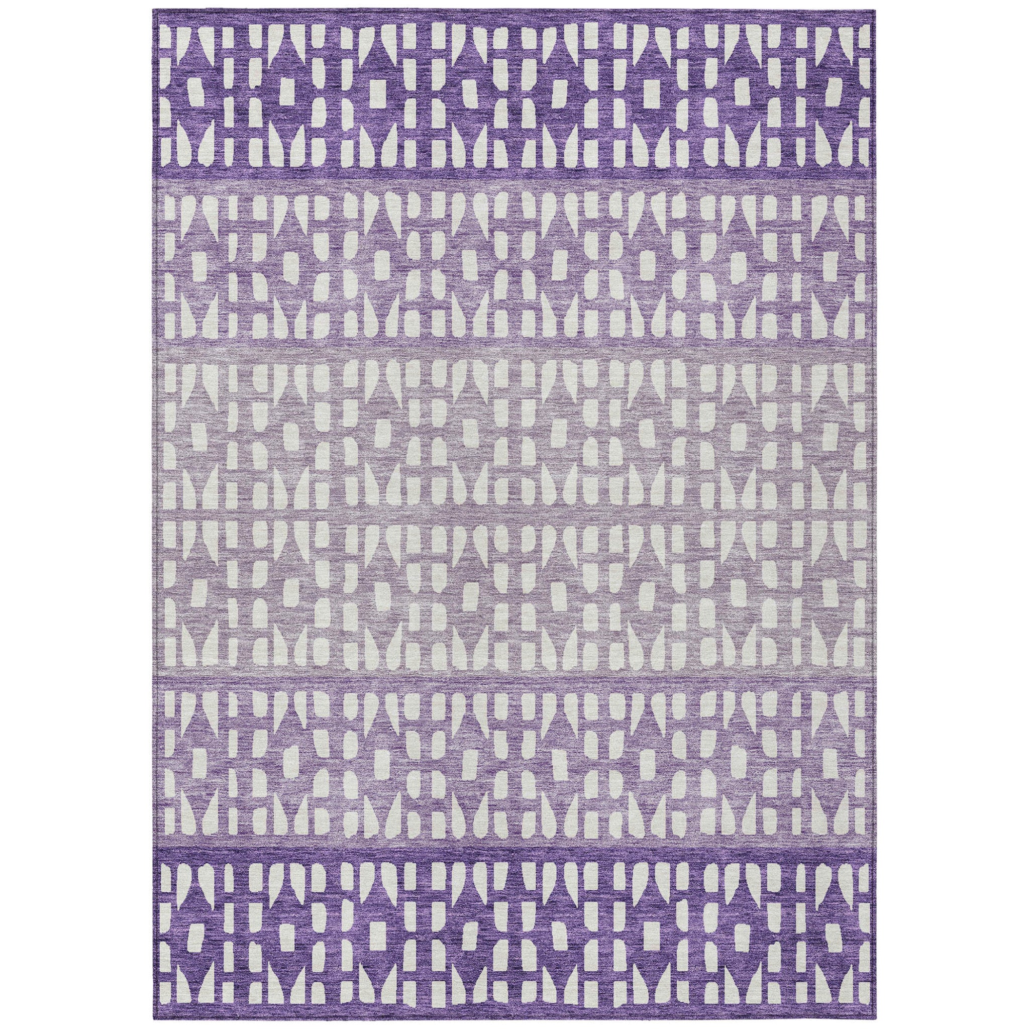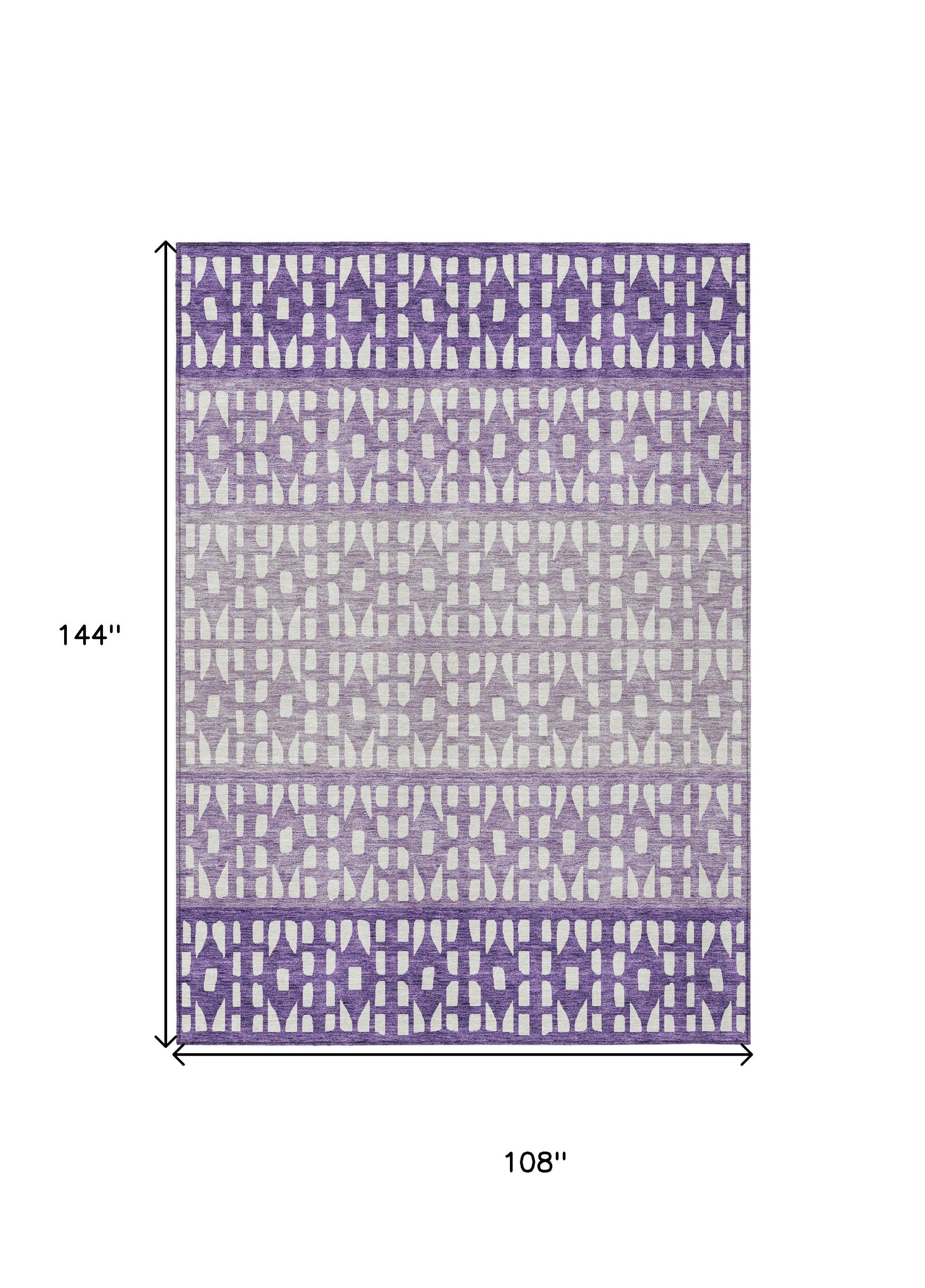 9' X 12' Purple Lavender And Ivory Geometric Washable Indoor Outdoor Area Rug