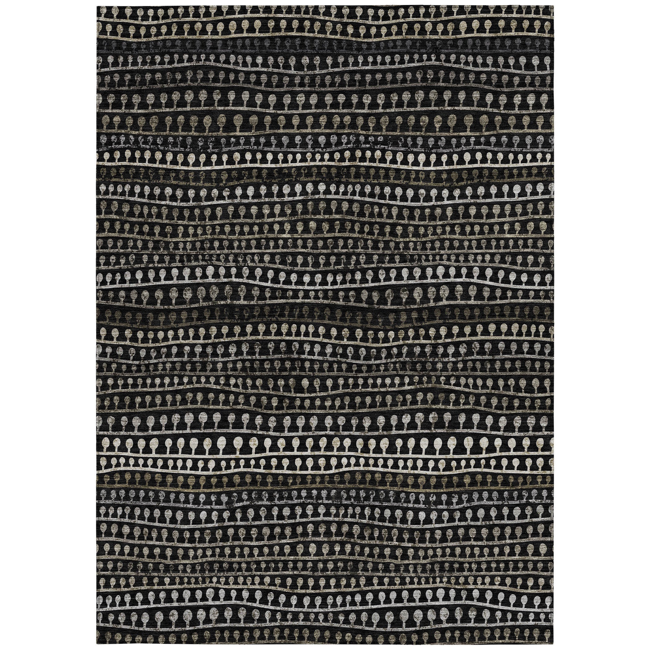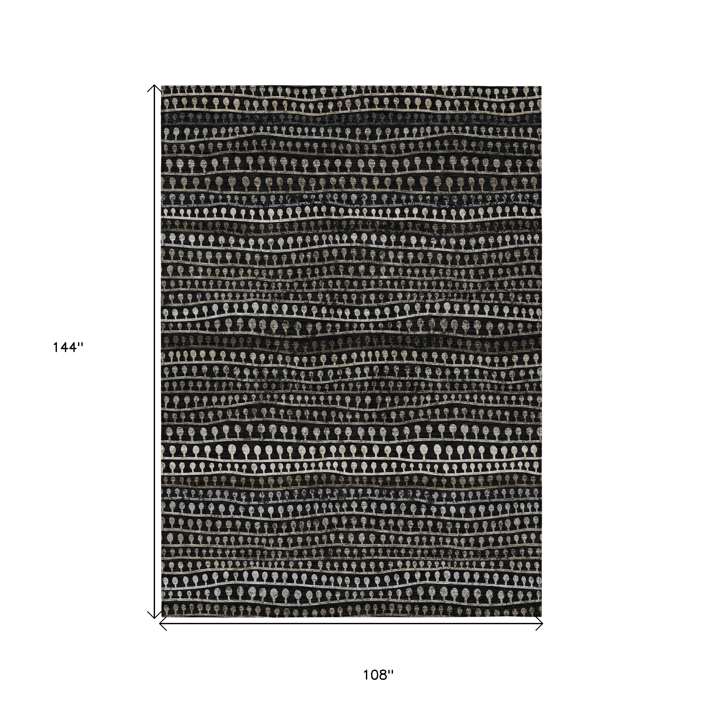 9' X 12' Taupe Charcoal And Gray Striped Washable Indoor Outdoor Area Rug