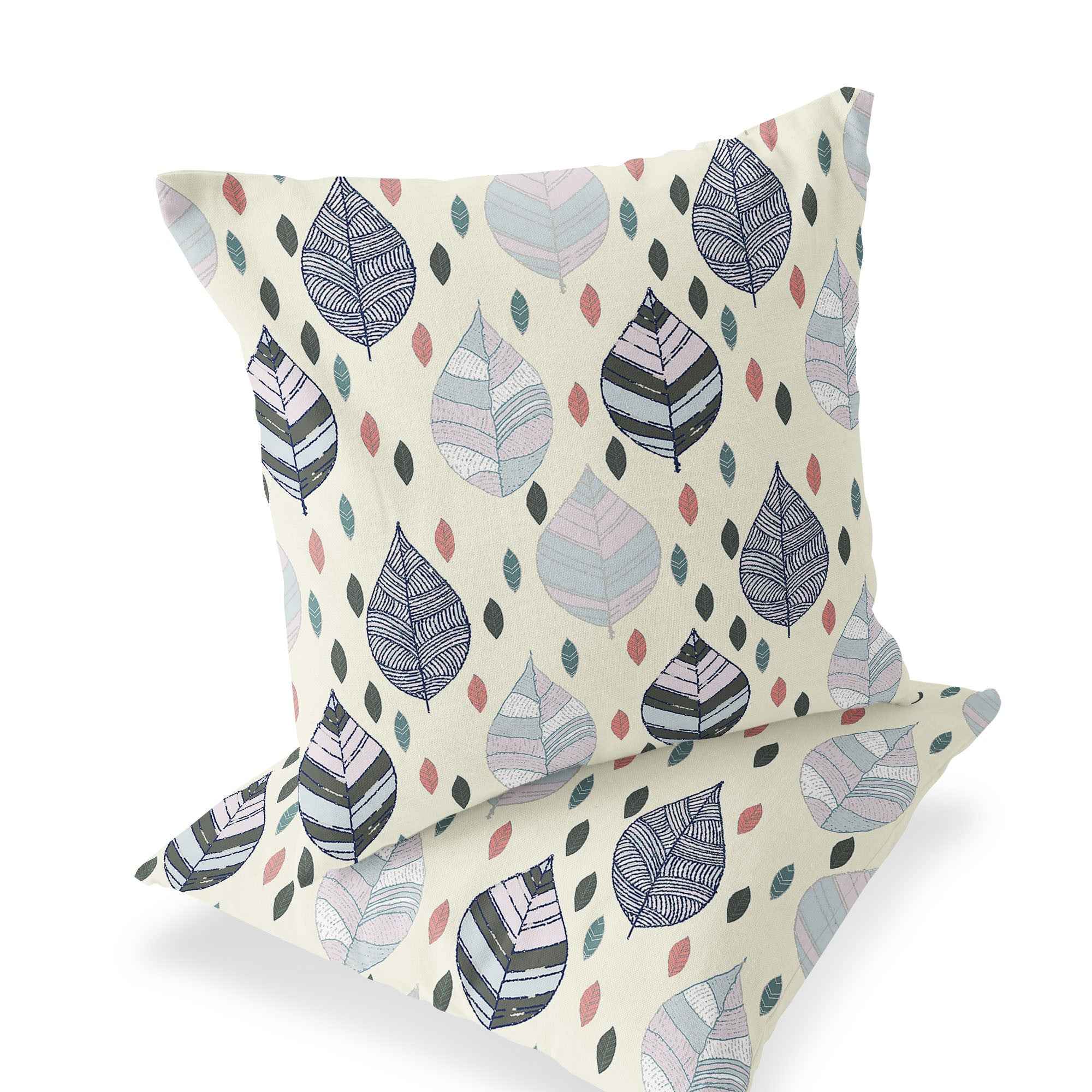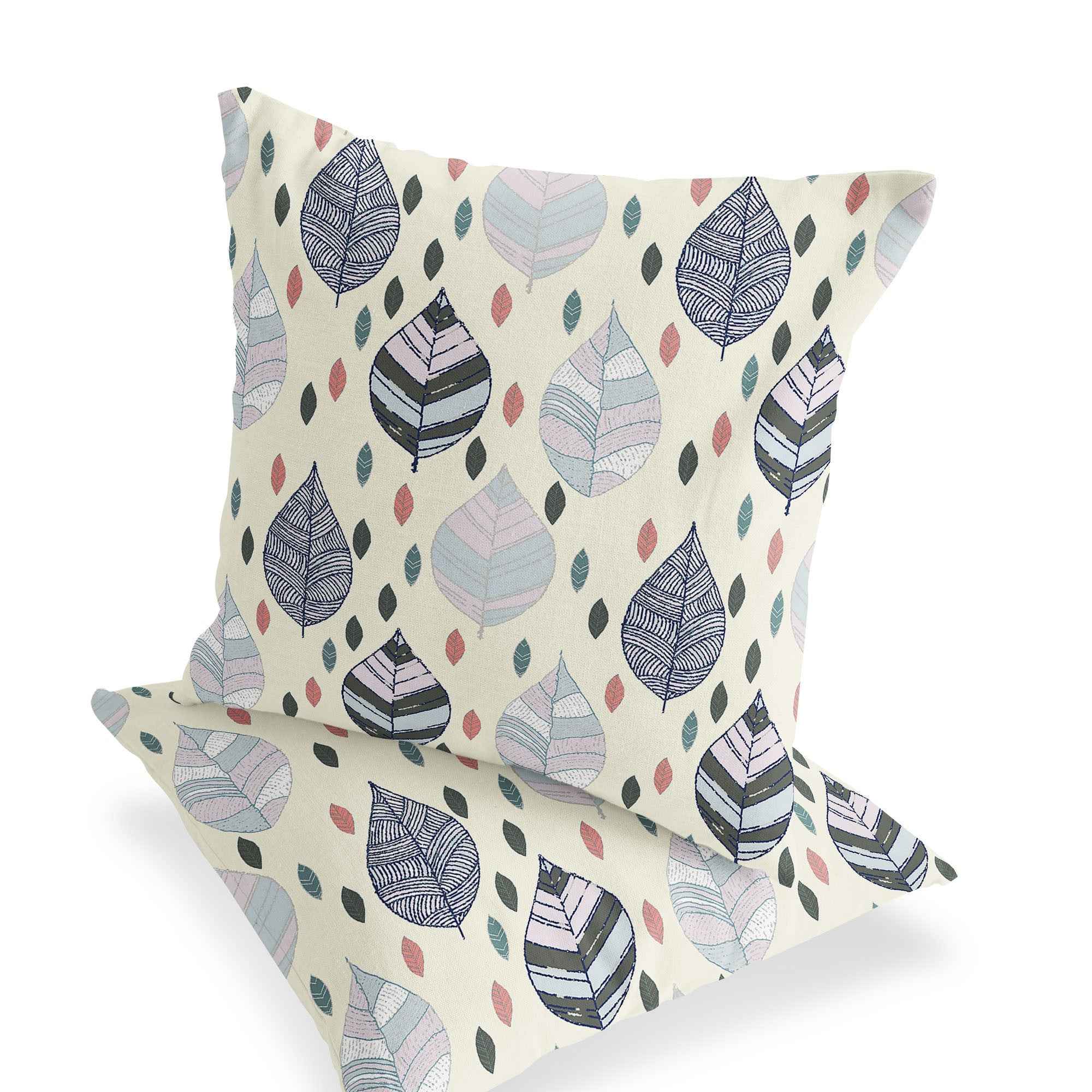 Set of Two 16" X 16" Green and Yellow Blown Seam Botanical Indoor Outdoor Throw Pillow