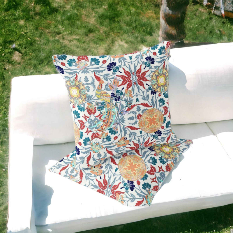 Set of Two 16" X 16" Red and White Peacock Blown Seam Eclectic Indoor Outdoor Throw Pillow