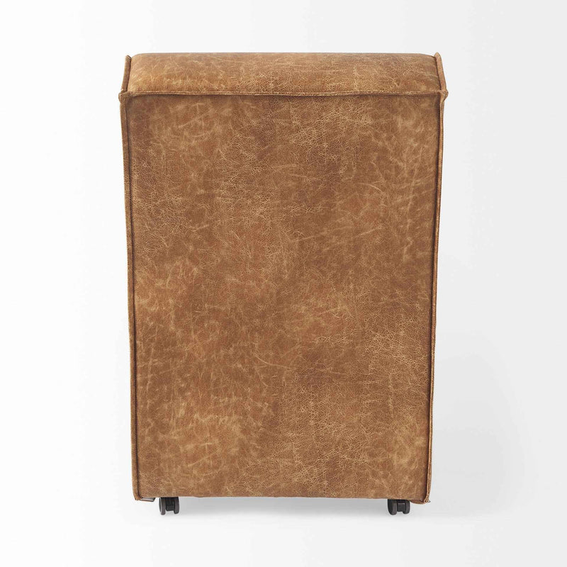 Set of Two Brown Upholstered Faux Leather Dining Side Chairs With Wheels