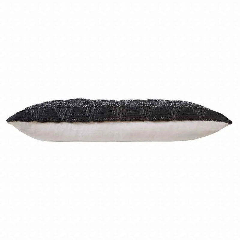 14" X 36" Black And Off-White 100% Cotton Geometric Zippered Pillow