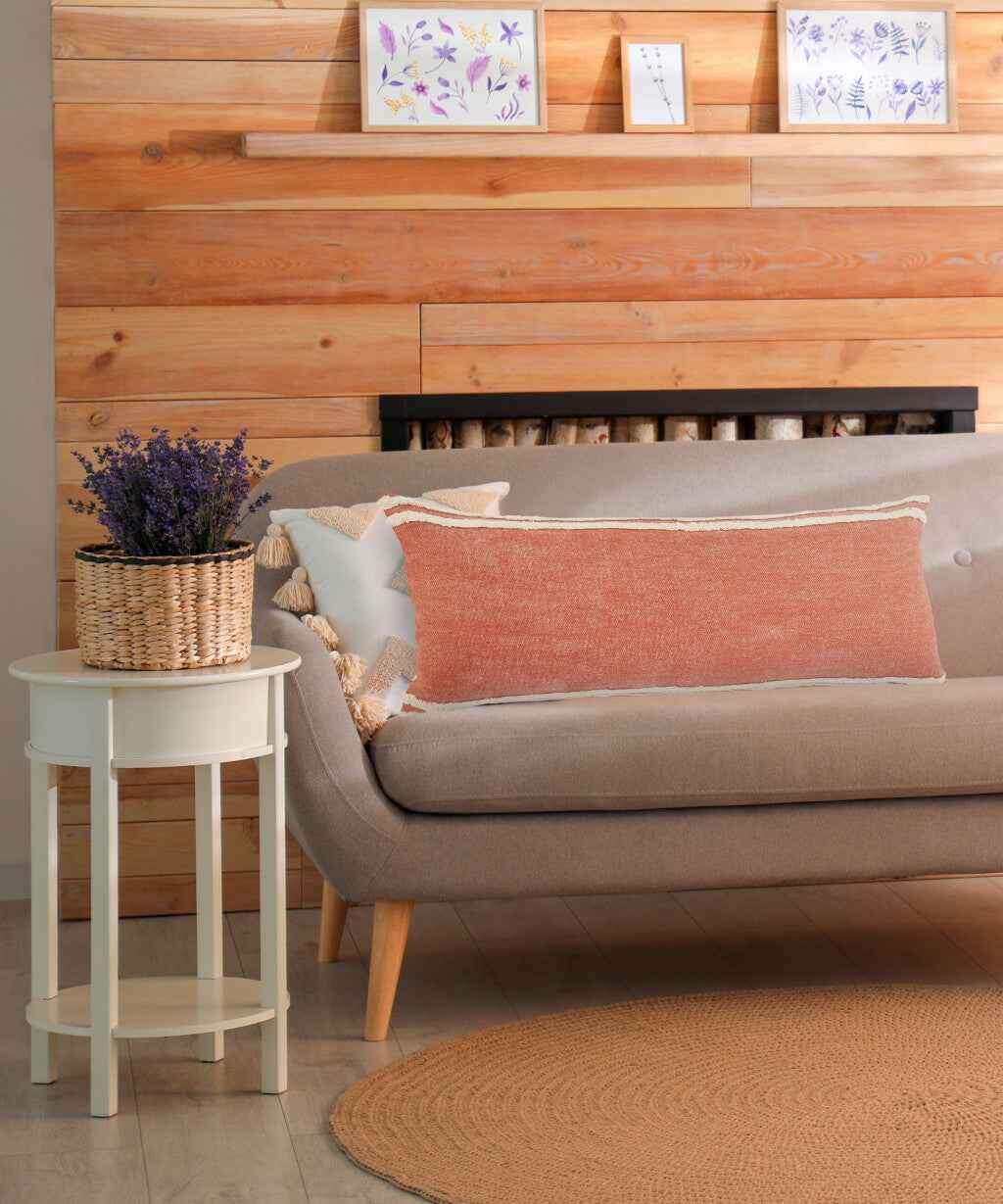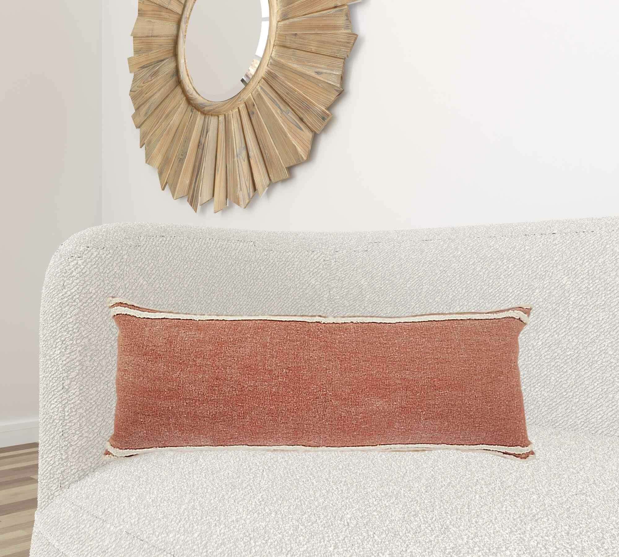 This 14" x 36" orange and off-white 100% cotton striped zippered pillow will add a beautiful decorative accent to your decor. Soft and textural orange and off-white 100% cotton has been used to make this pillow look and feel like a real treasure. For anyone that loves to decorate or accent their space with color and texture. A great decorative accessory for your favorite chair, to accent your sofa, or to use as part of your bed ensemble. 14" H x 14" W x 36" D