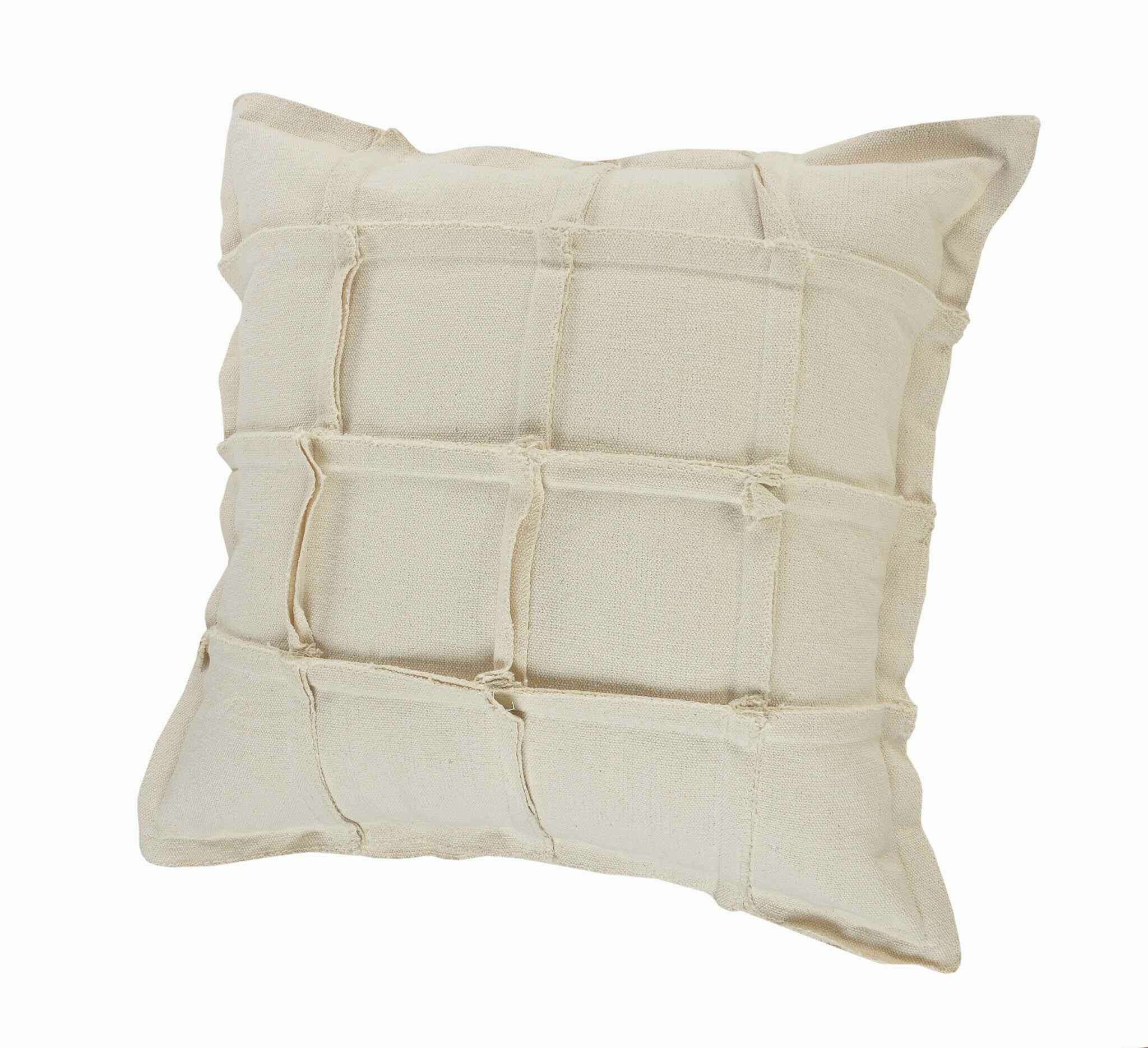 Unique and decorative, this comfortable 20" x 20" beige 100% cotton zippered pillow will leave a lasting impression. This beige colored decorative pillow is made from high grade 100% cotton that makes it super soft to the touch and long lasting. For anyone that loves to decorate or accent their space with color and texture. A great decorative accessory for your favorite chair, to accent your sofa, or to use as part of your bed ensemble. 4" H x 20" W x 20" D
