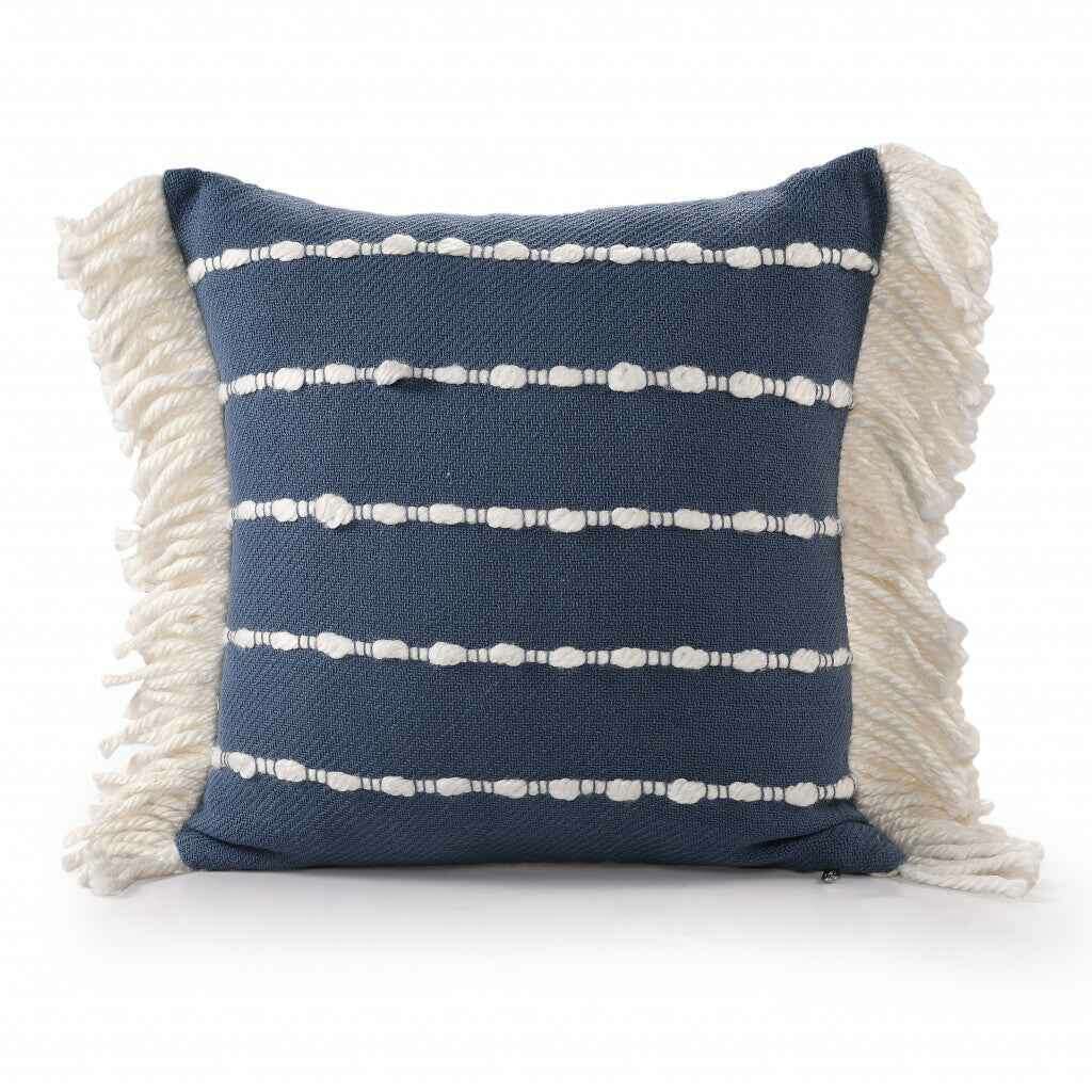 Unique and decorative, this comfortable 20" x 20" navy and ivory 100% cotton striped zippered pillow will leave a lasting impression. The navy and ivory coloring of the soft and long lasting 100% cotton will add dimension and texture to your space. Great to use on its own or mix with other decorations for the perfect look. Decorative pillows are a great way to change up the look and feel of your space easily and quickly. 4" H x 20" W x 20" D