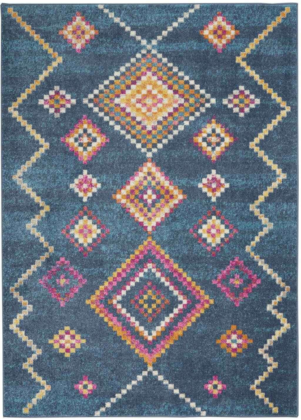 Add some artistry to your room with this 5' x 7' navy blue southwestern berber area rug. This rectangle shaped rug features a southwestern design in navy blue to give it visual interest. A classic shape marries with good looking design for your space Made in Turkey, this rug offers high quality combined with good looking designer sensibilities. Area Rugs help to give warmth and sense of home to your space. 1" H x 63" W x 87" D