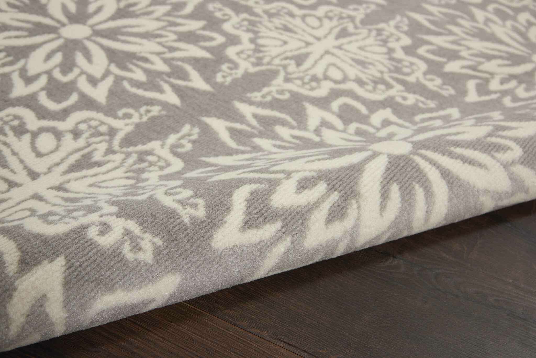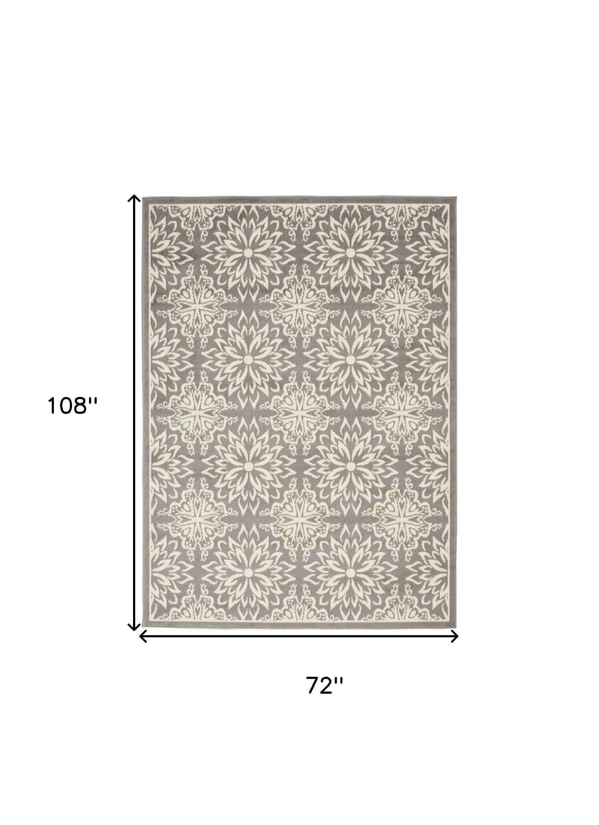 Set an inviting tone in your space with this 6' x 9' gray floral power loom area rug. This rectangle shaped rug features a floral design in gray to give it visual interest. A classic shape marries with good looking design for your space The coloring of this rug adds a delightfully neutral tone to your home and will easily match with most any decor. Made in Turkey, this rug offers high quality combined with good looking designer sensibilities. Place this area rug against a hardwood or tile floor and it will enliven your living space with style and sophistication. .50" H x 72" W x 108" D