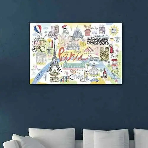 Fun Illustrated Paris Map Unframed Print Wall Art