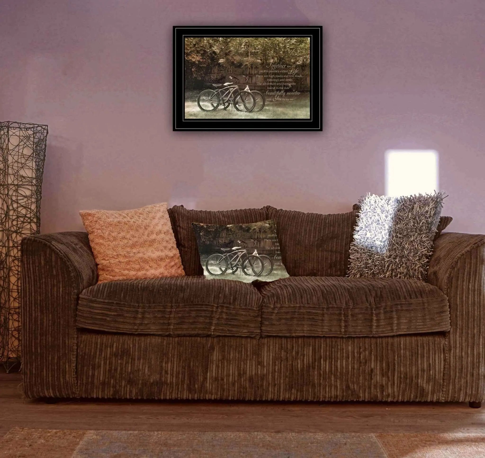 Bring some sizzle to your space with this eye-catching journey together 2 black framed print wall art. This transportation inspired wall art features a bicycle icon and will bring a refreshing look and perspective to your walls. This print is a visual artistic expression that allows you to decorate your space in style. Reproduced for you on paper, this hanging decorative accent will be a trendy and fashionable way to dress your walls. Adding this hanging wall art to your space to make your room feel more finished and attractive. Instantly liven up your space with this art that brings color and dimension to your walls. 15 inches H x 21 inches W x 1 inches D