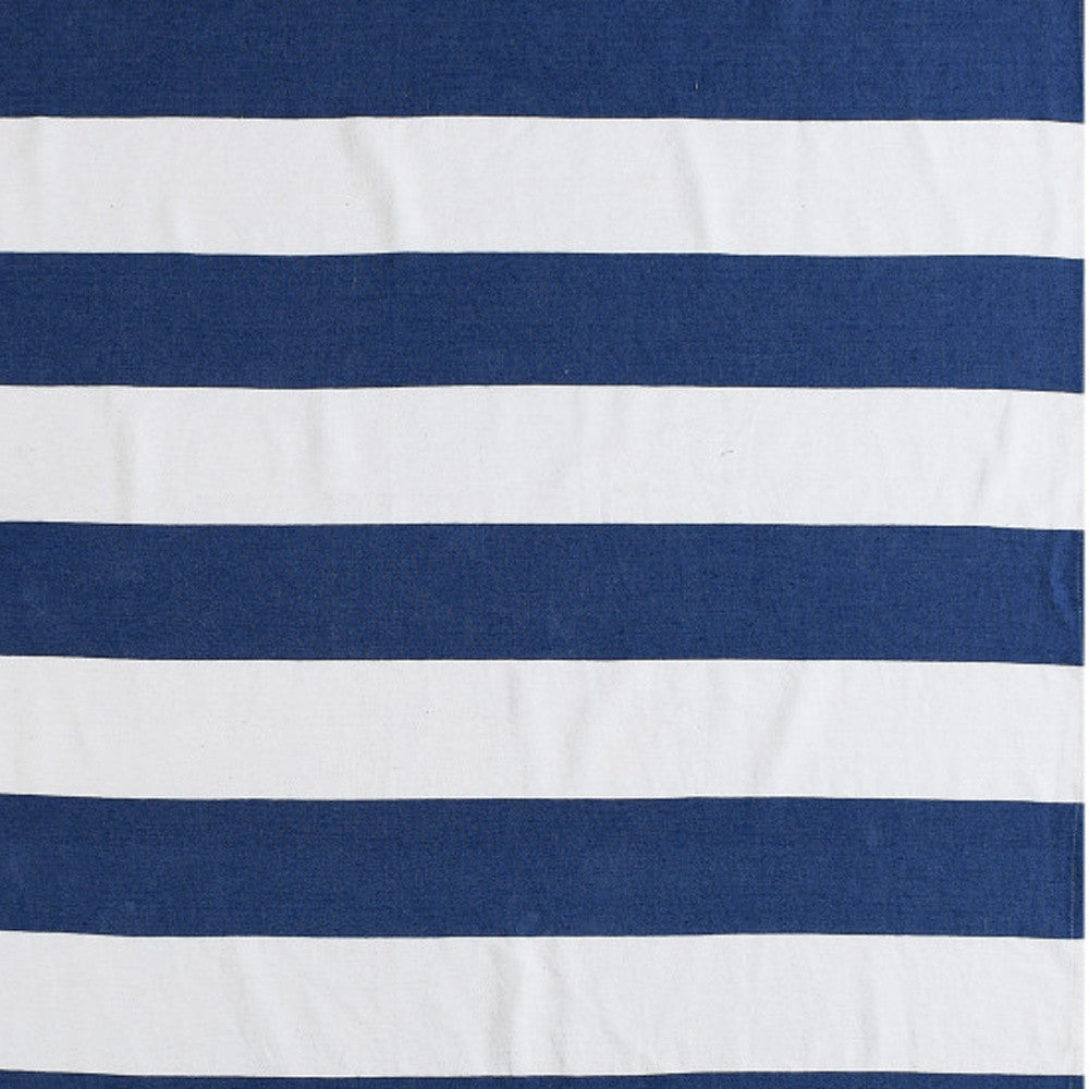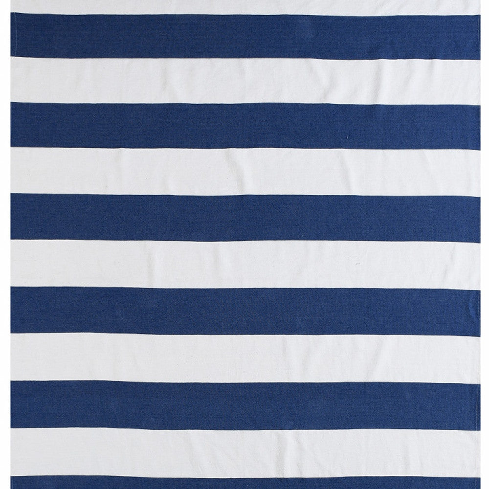 Blue and White Knitted Cotton Striped Throw Blanket