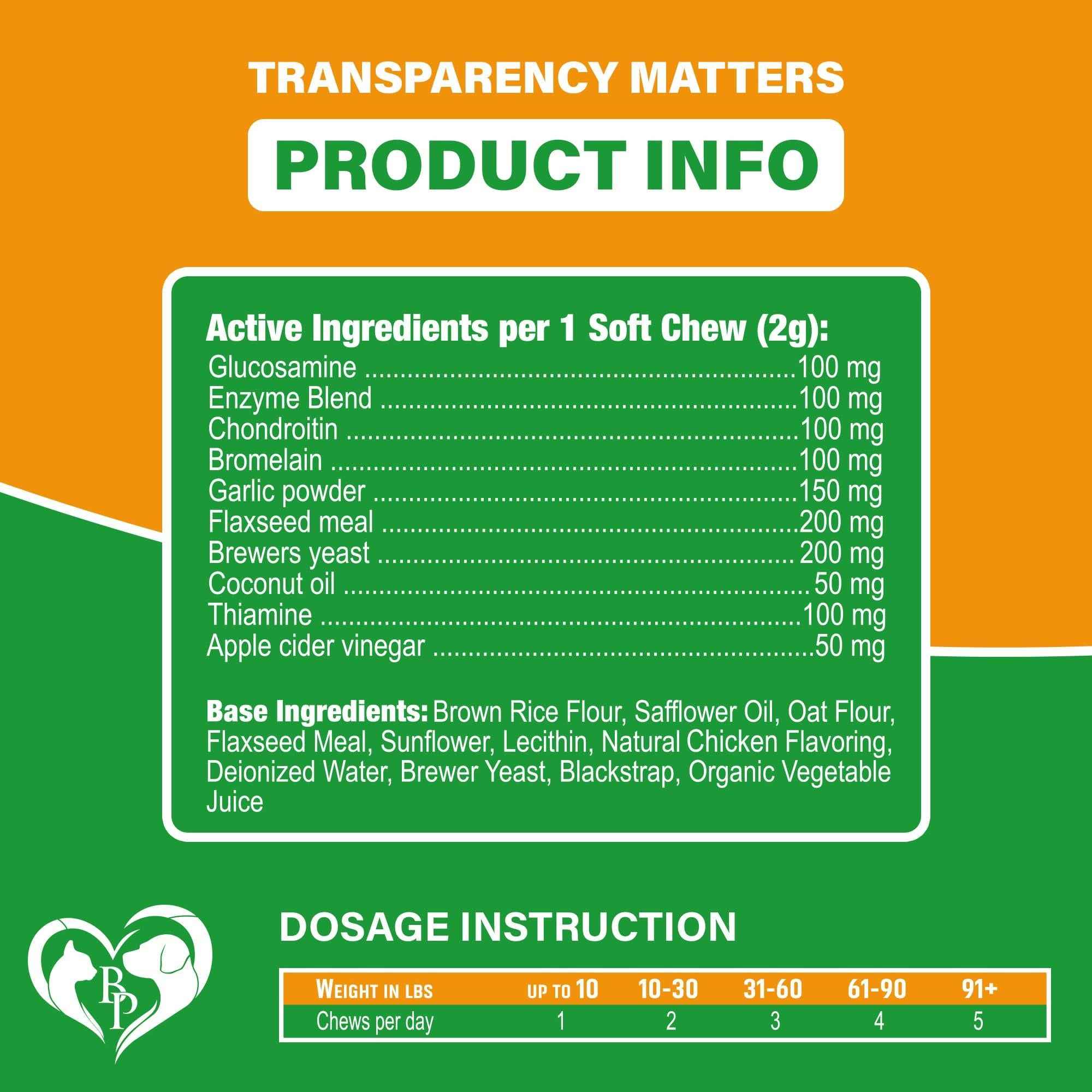 TASTY PROTECTION with HIP & JOINT SUPPORT, VITALITY, SKIN COAT, AND IMMUNE SYSTEM: Innovative formula with glucosamine and chondroitin for effective flea and tick protection, comprehensive support for your dog's hip joints, vital energy levels, skin coat health, and immune system.