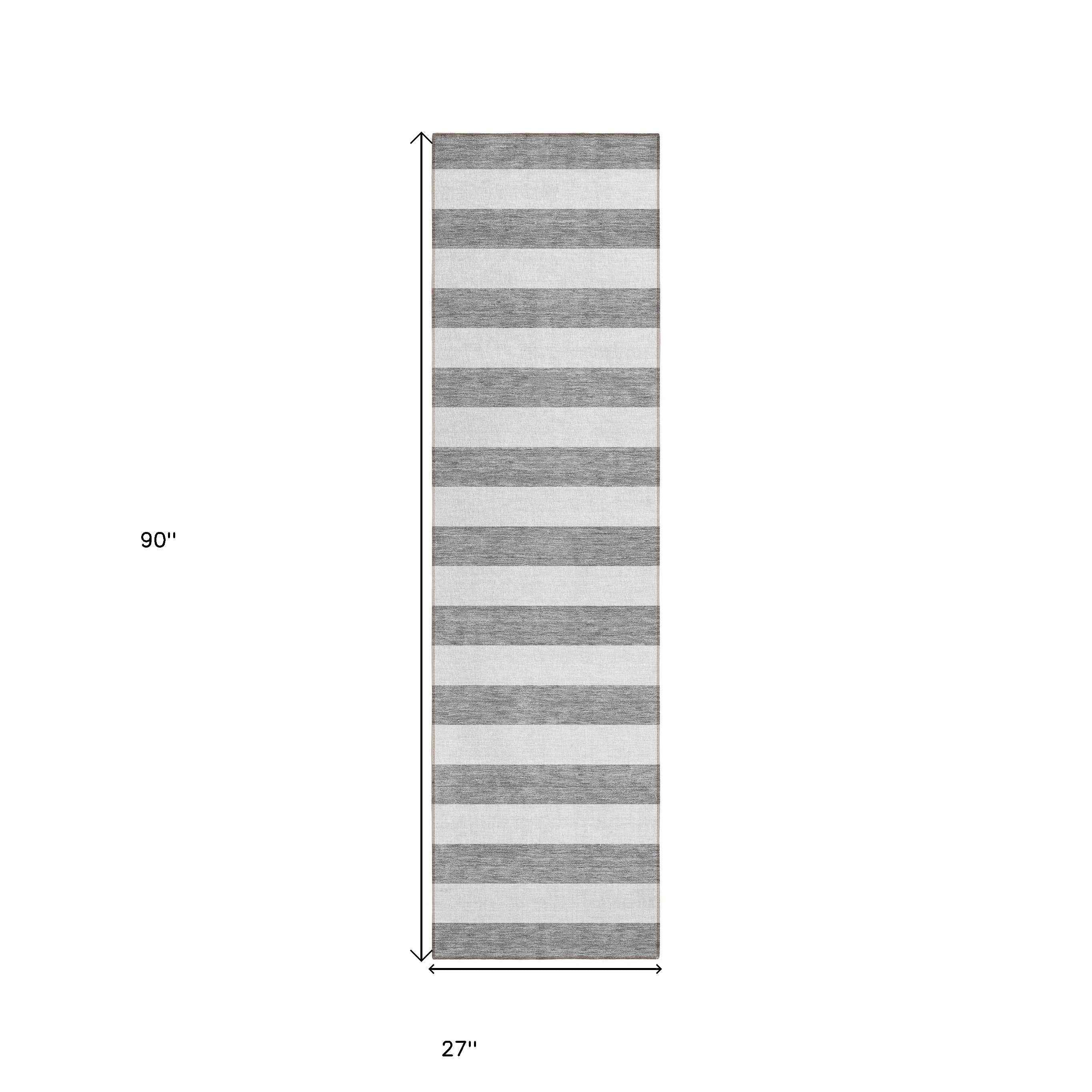 8' Runner Gray and White Striped Washable Non Skid Indoor Outdoor Runner Rug