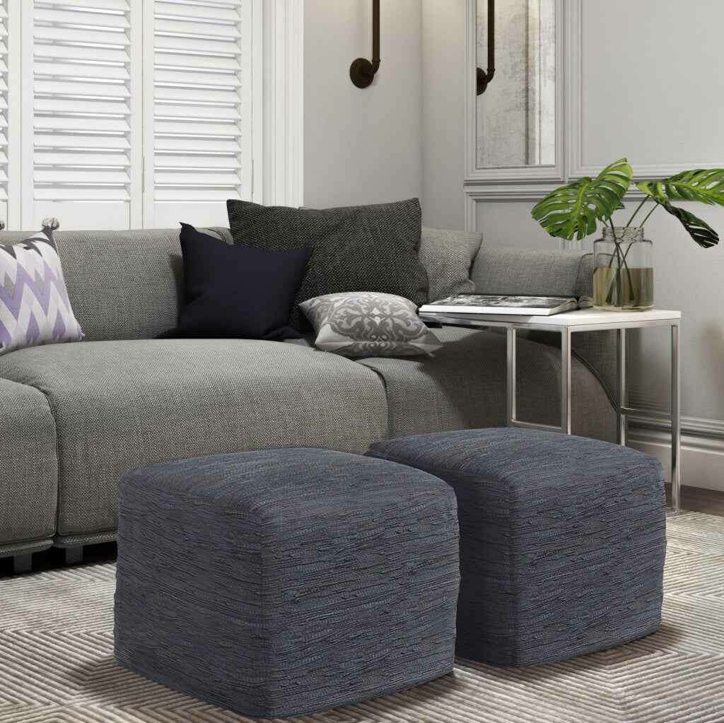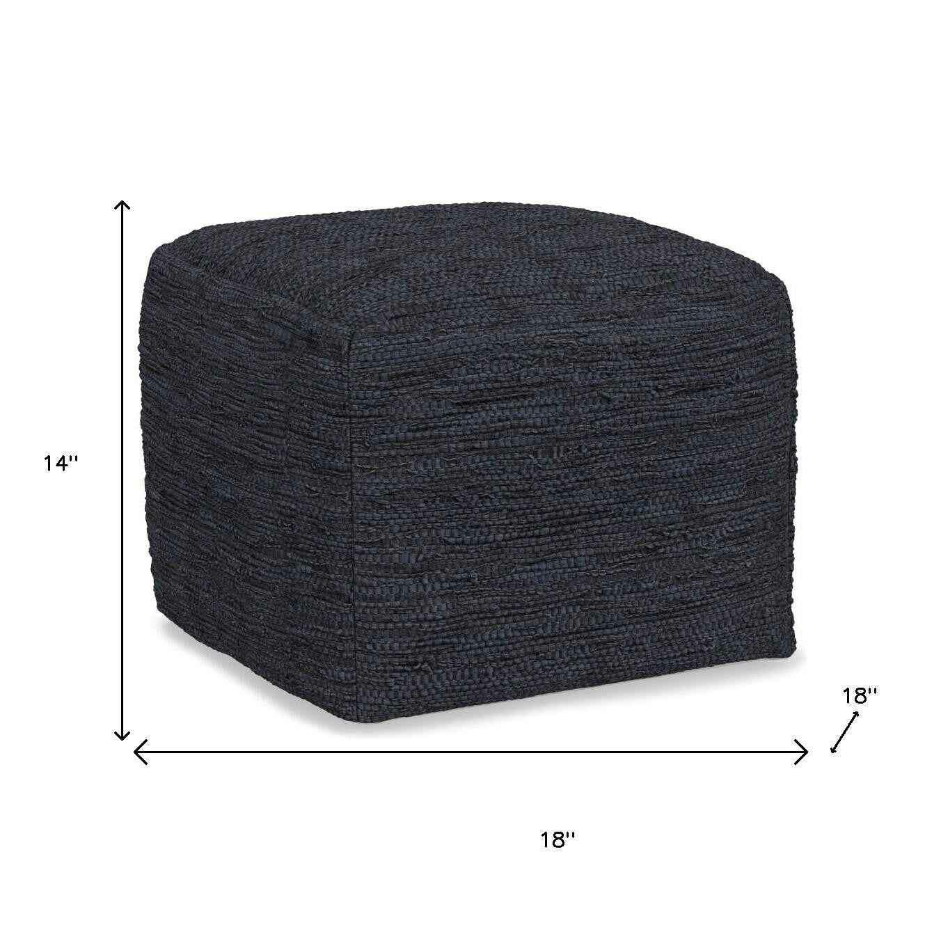 18" Blue Leather Pouf Ottoman Перейти к содержанию
