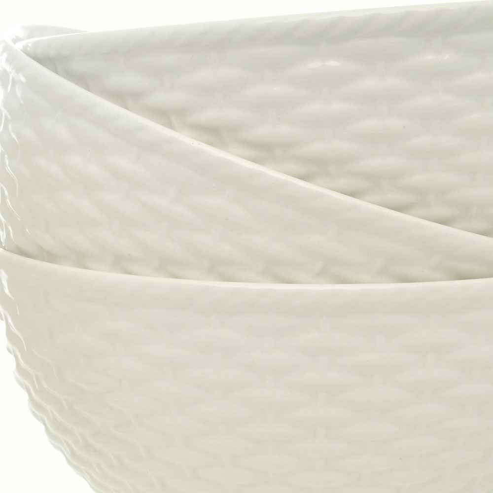 White Four Piece Weave Stoneware Service For Four Bowl Set