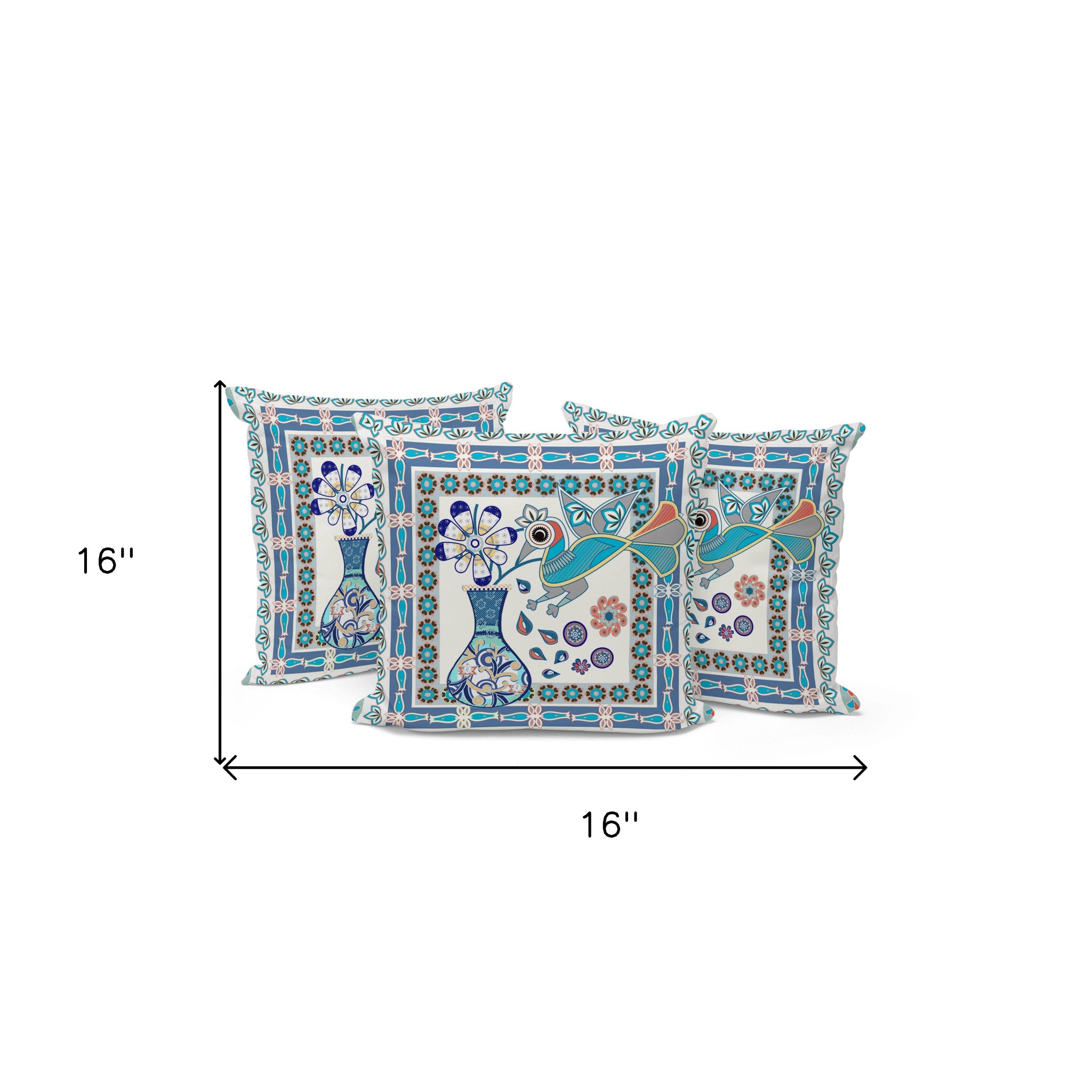 Set of Three 16" X 16" Blue and Off White Peacock Blown Seam Floral Перейти к содержанию