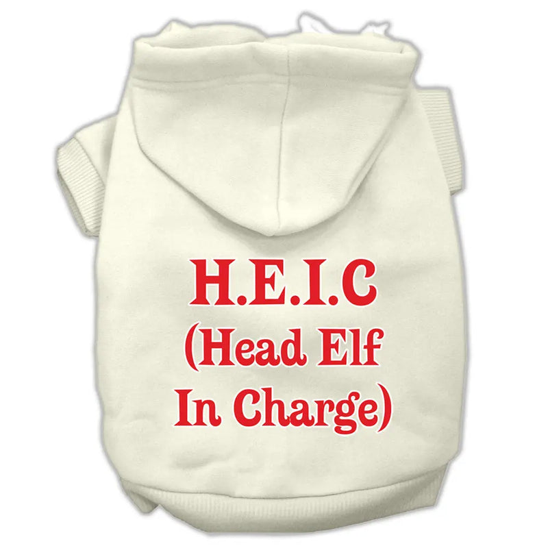 Head Elf In Charge Screen Print Pet Hoodies Cream Size Sm