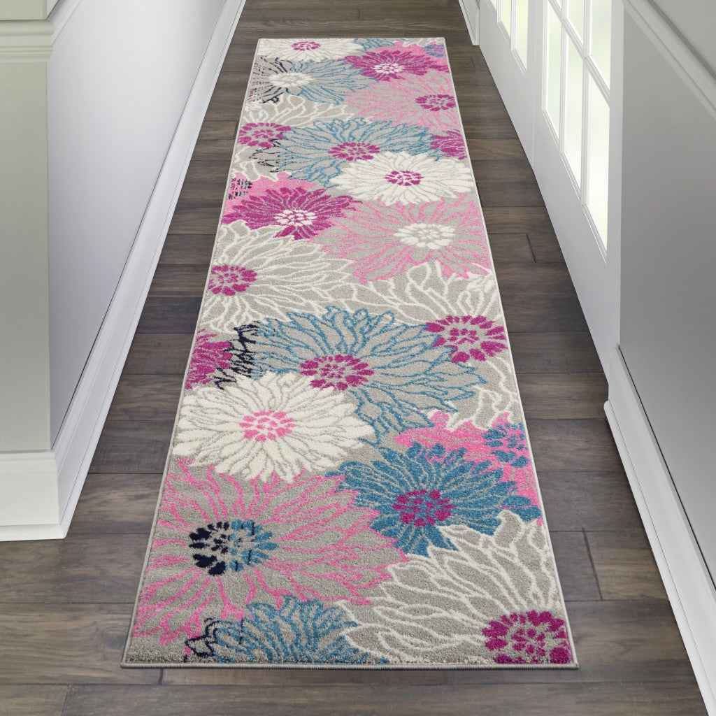 10' Gray Floral Dhurrie Runner Rug