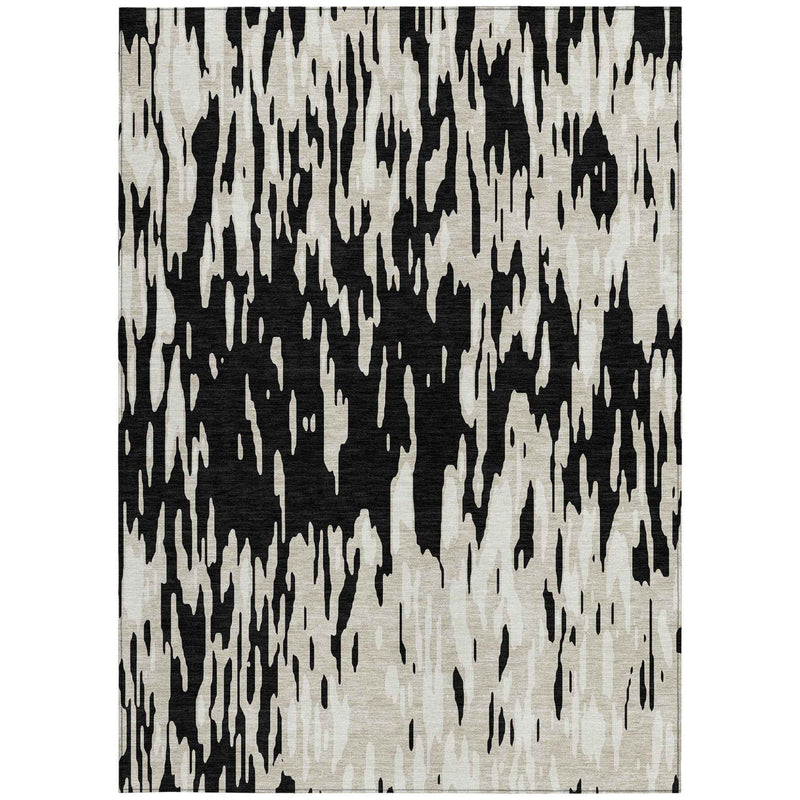 10' X 14' Black And Ivory Abstract Washable Indoor Outdoor Area Rug