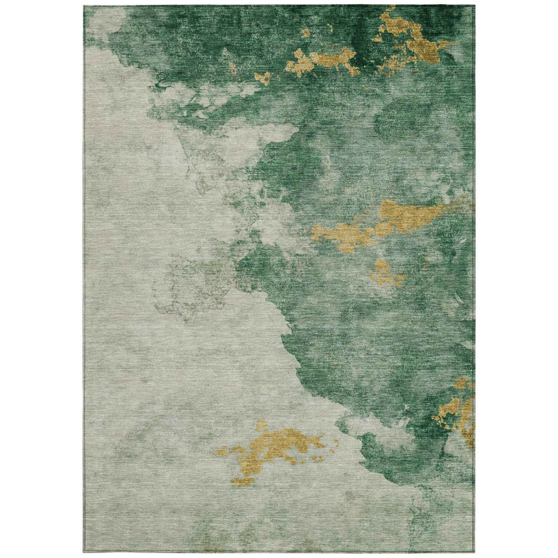 10' X 14' Emerald Sage And Ivory Abstract Washable Indoor Outdoor Area Rug