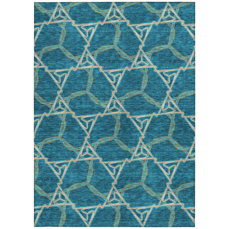 10' X 14' Teal Blue And Beige Geometric Washable Indoor Outdoor Area Rug