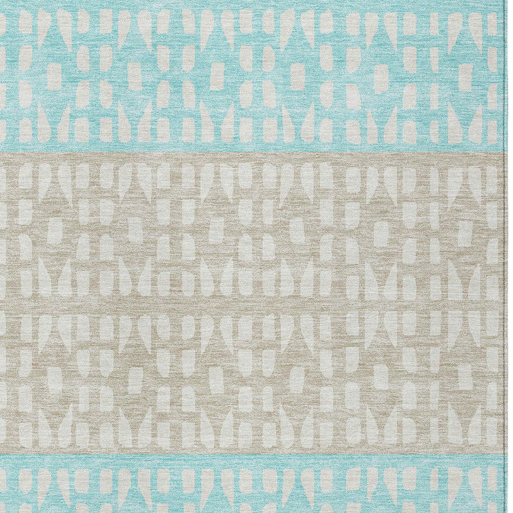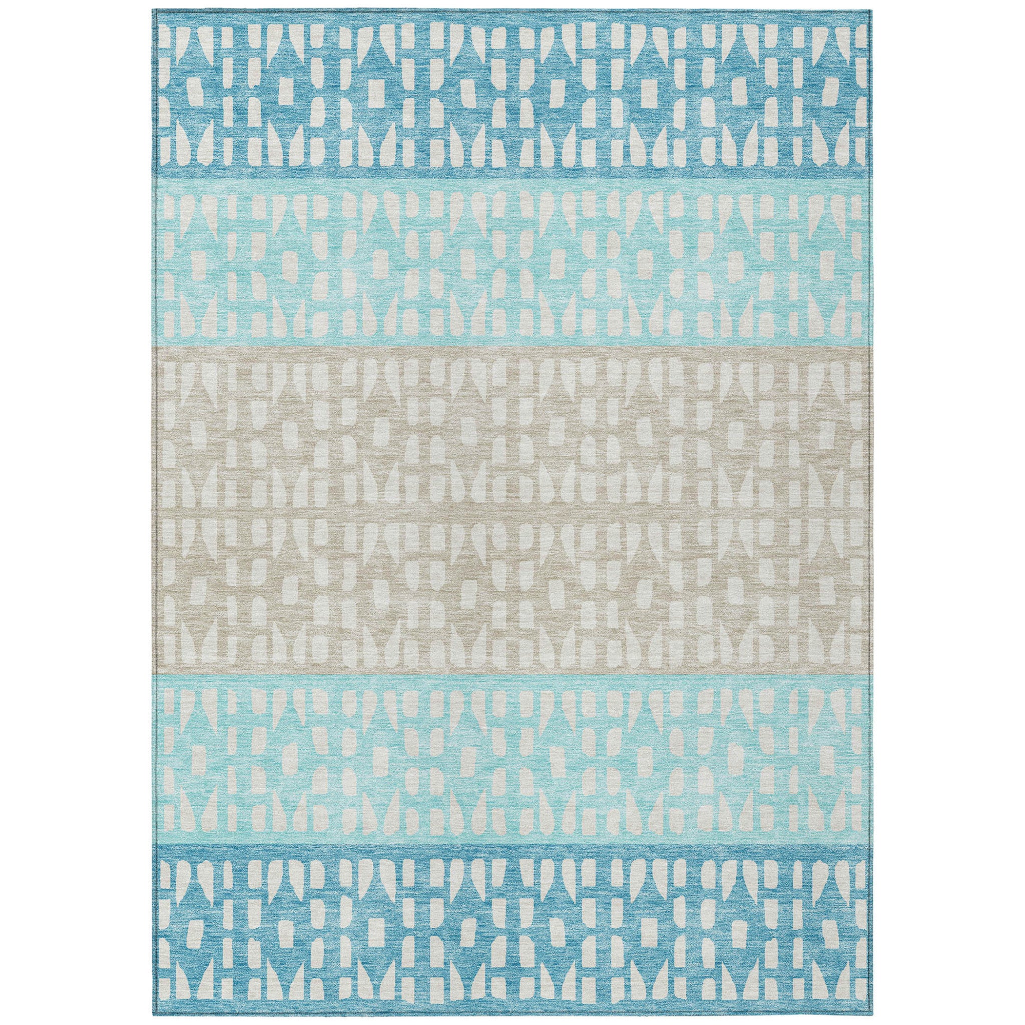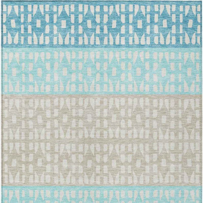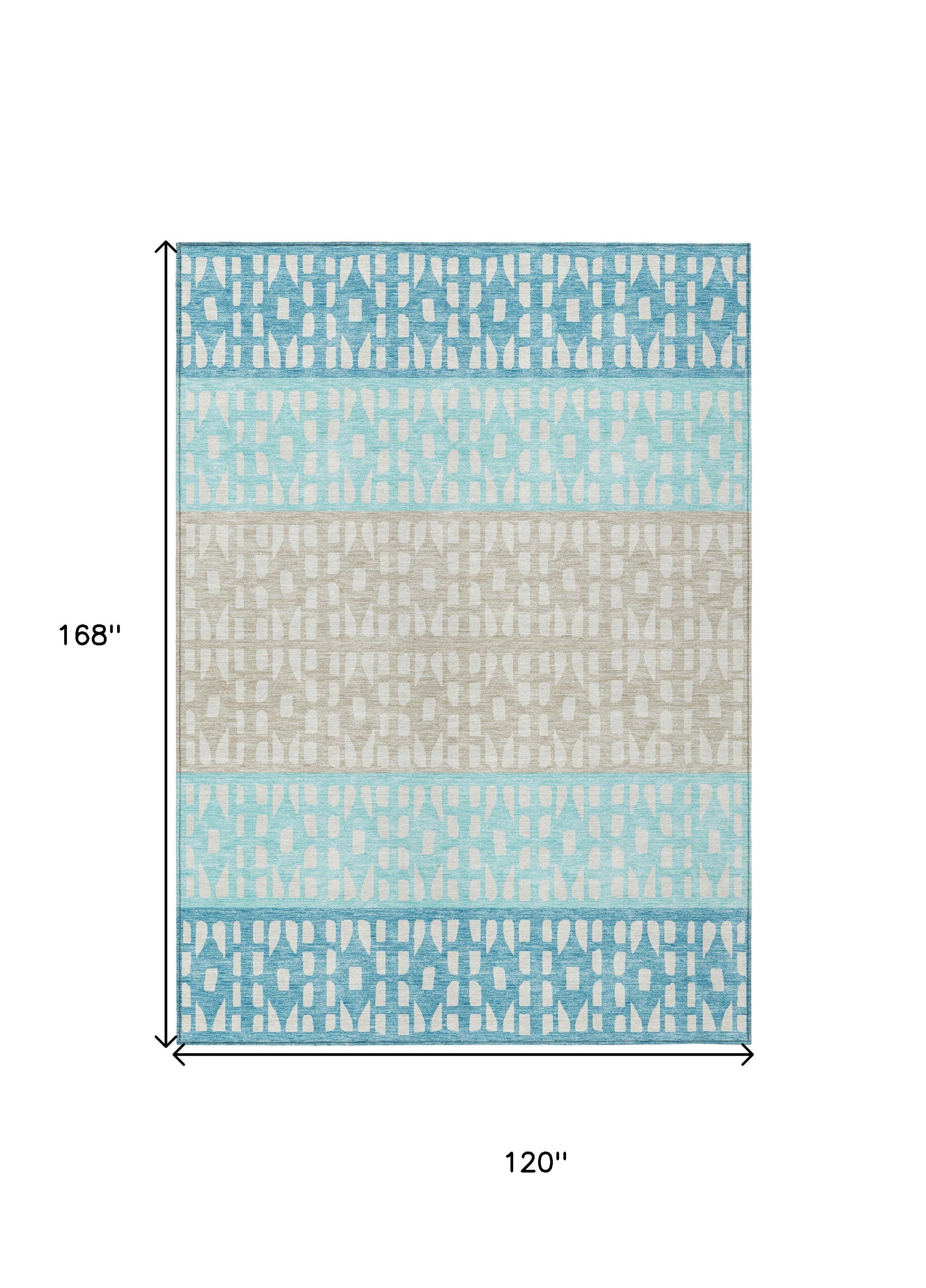 10' X 14' Teal Blue Aqua And Ivory Geometric Washable Indoor Outdoor Area Rug