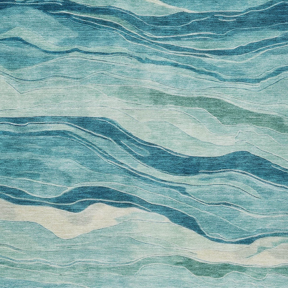 This 10-foot x 14-foot turquoise striped washable indoor outdoor area rug, is a great way to add warmth to a room. This rectangle shaped rug features a striped design that will work well both indoors or out. A classic shape marries with good looking design for your living room, hall, bedroom, porch, patio, or poolside. Ideal for outdoor spaces or high traffic areas with kids and pets, this rug is made from heavy duty polyester that is stain resistant to help repel water, dirt, and stains. Versatile in use, durable, and easy to maintain, this rug is an ideal solution to add a decorative and inviting touch to your indoor or outdoor space. 120-inch h x 168-inch w x 0.19-inch d.