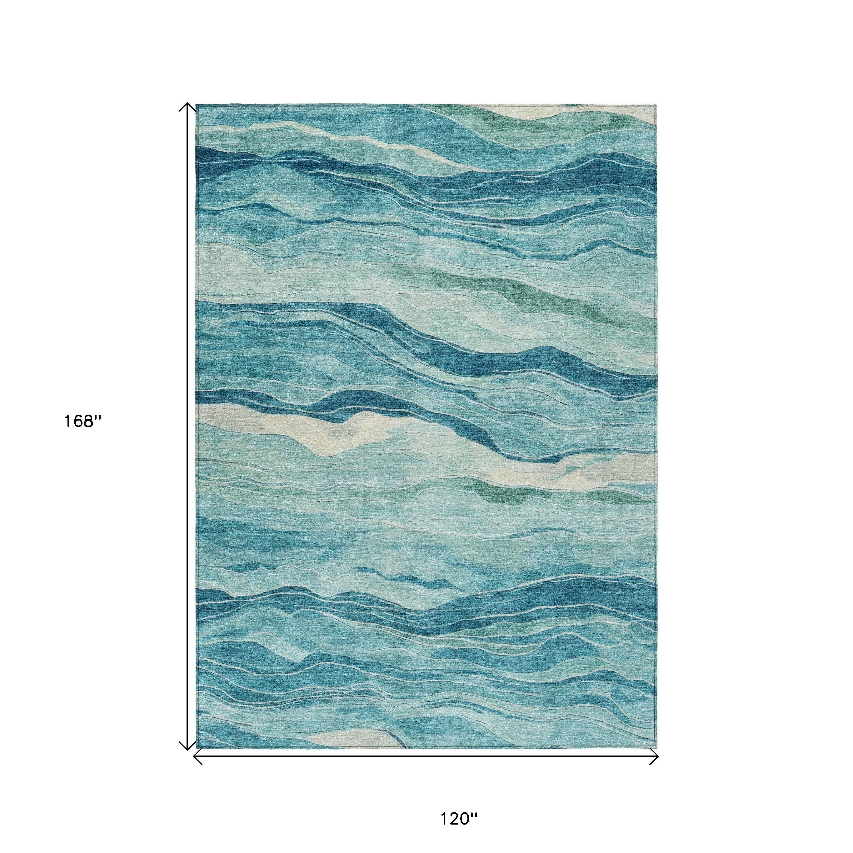 10' X 14' Turquoise Striped Washable Indoor Outdoor Area Rug
