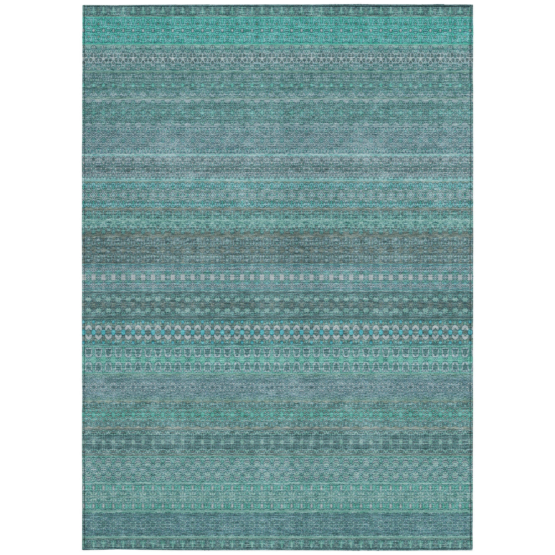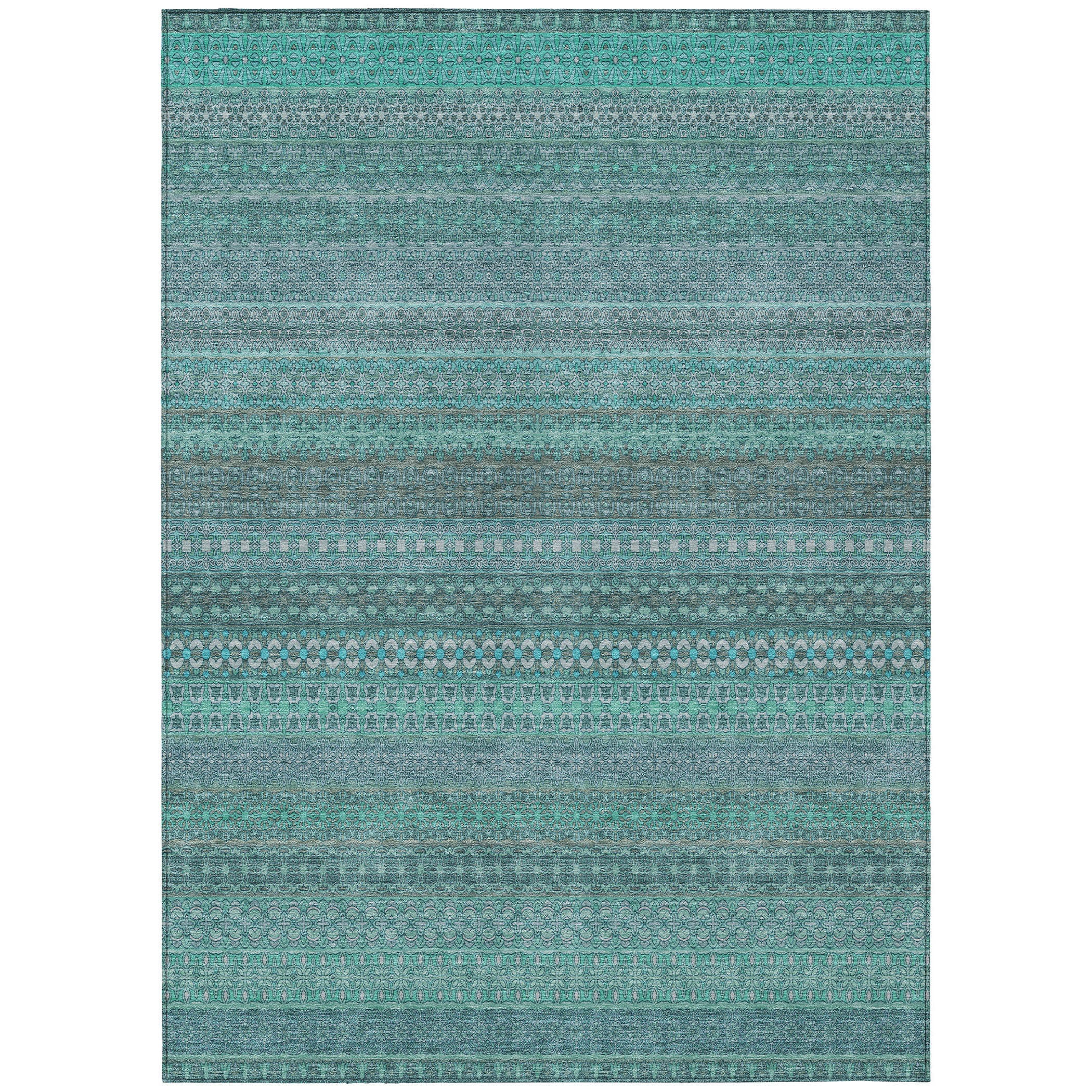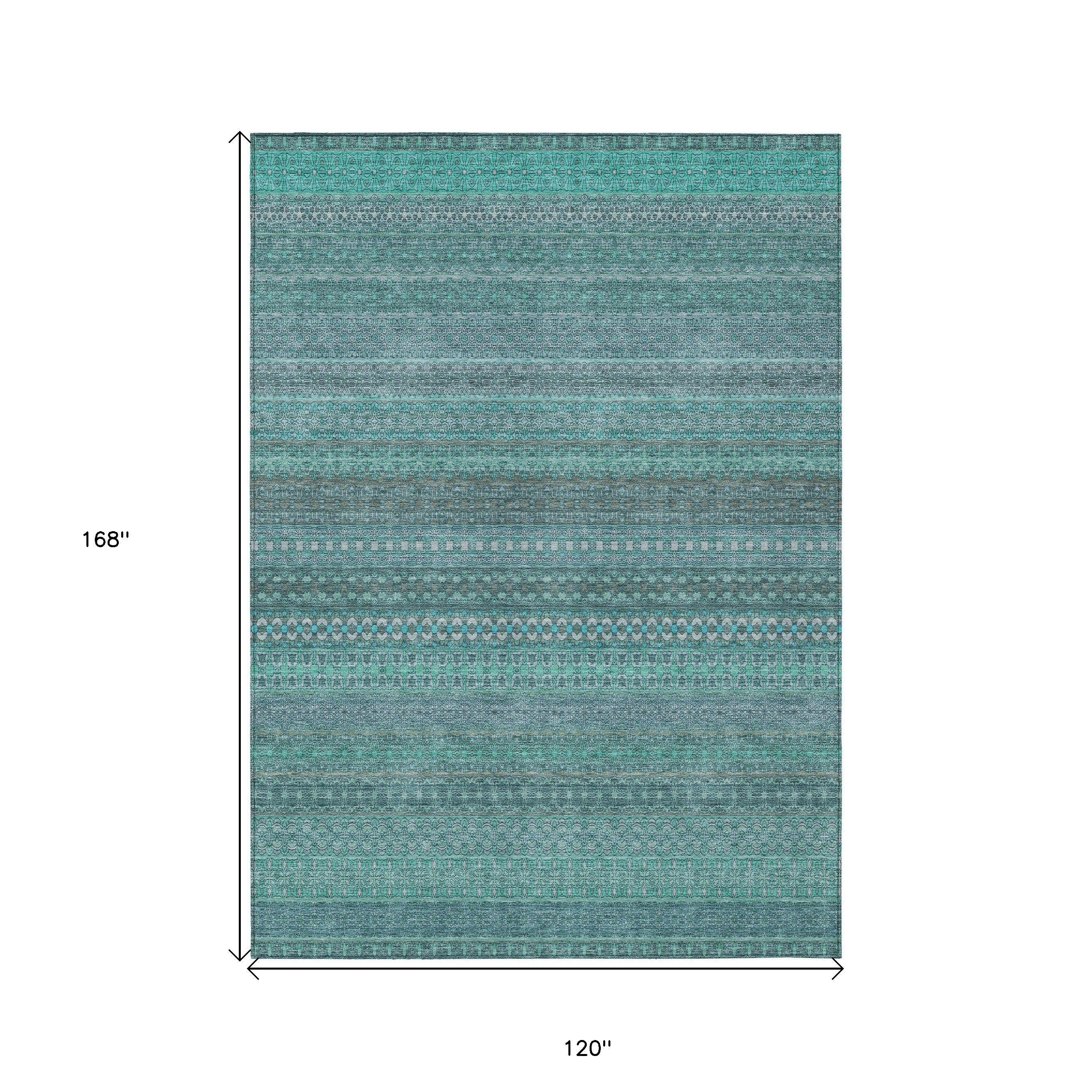 10' X 14' Turquoise Striped Washable Non Skid Indoor Outdoor Area Rug
