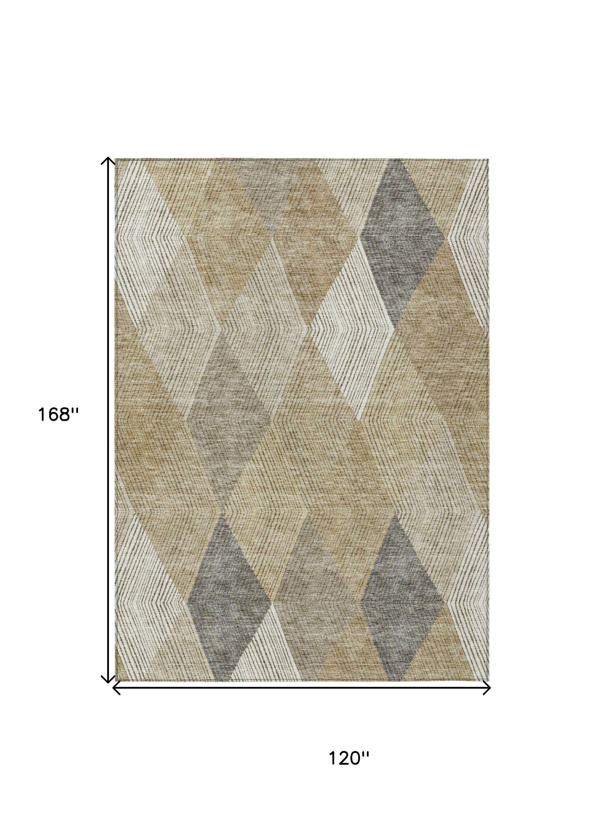 10' X 14' Wheat Taupe And Ivory Argyle Washable Indoor Outdoor Area Rug