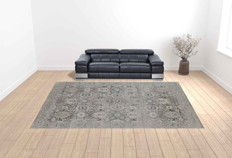 12' X 15' Gray And Silver Abstract Power Loom Distressed Area Rug