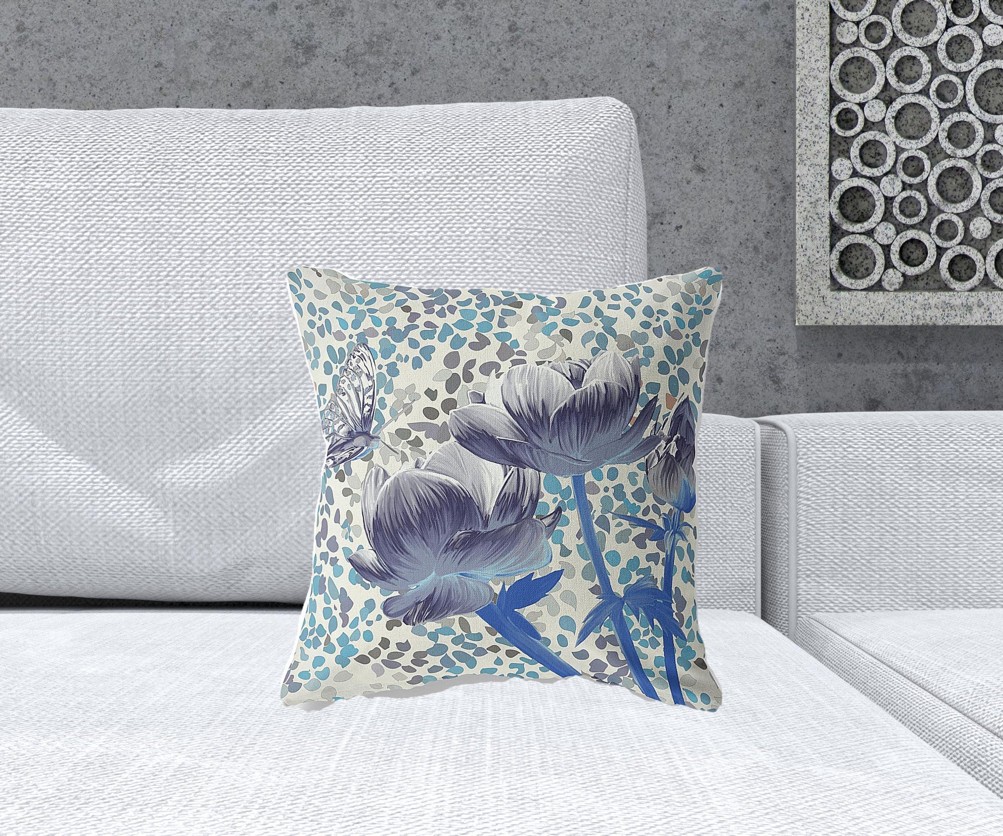 16" x 16" Gray Butterfly Blown Seam Floral Indoor Outdoor Throw Pillow Перейти к содержанию