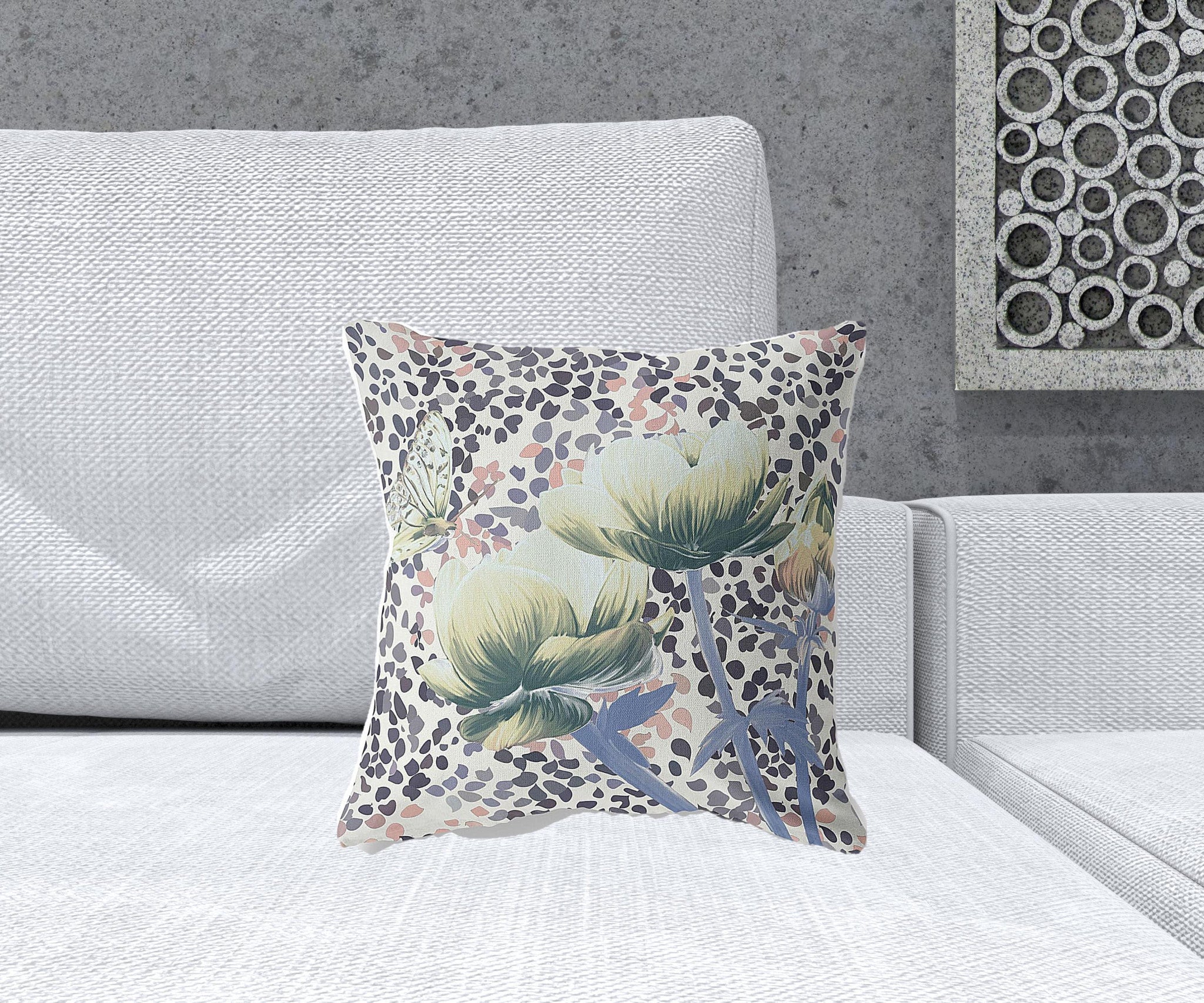 This 16" x 16" green and black blown seam floral indoor outdoor throw pillow will add a beautiful decorative accent to your decor. The green and black coloring of the extremely durable and long lasting broadcloth will add dimension and texture to your space. A great decorative accessory to decorate indoors or out. Great to use on its own or mix with other decorations for the perfect look. 5" H x 16" W x 16" D