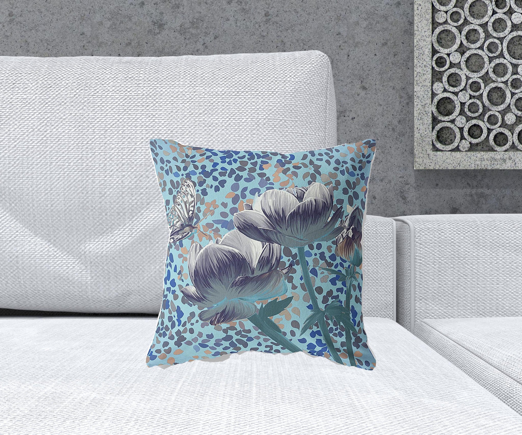 16" x 16" Indigo Butterfly Blown Seam Floral Indoor Outdoor Throw Pillow