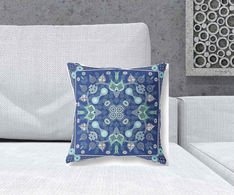 16" x 16" Midnight Blue Blown Seam Paisley Indoor Outdoor Throw Pillow