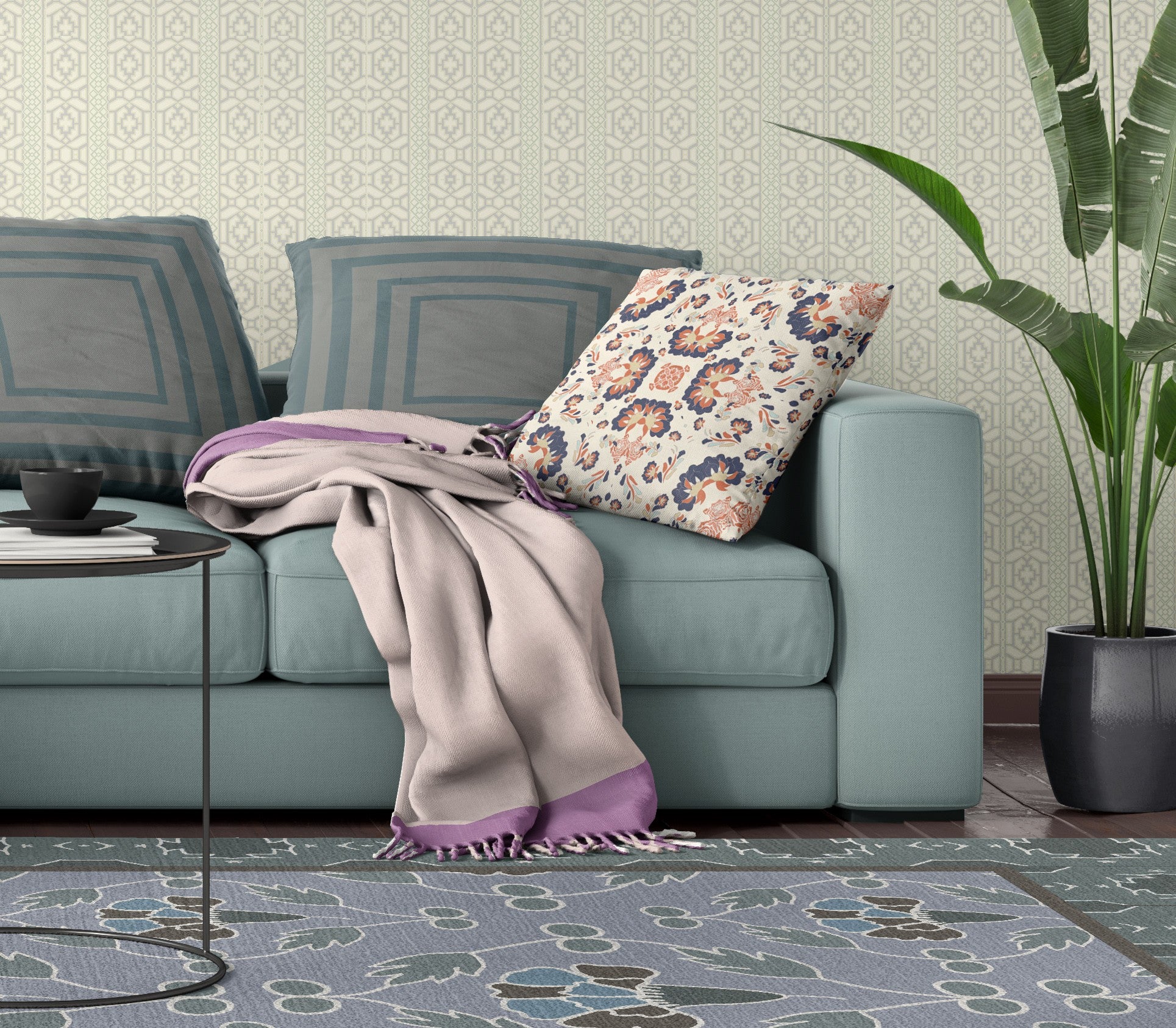 Bring a bit of fashion and zip to your space with this eye-catching and comfy 16" x 16" off white and blue floral blown seam suede throw pillow. Decorative throw pillows not only add color and dimension to your space but can be comfy and supportive when you are lounging and cuddling as well. A great decorative accessory for your favorite chair, to accent your sofa, or to use as part of your bed ensemble. 5" H x 16" W x 16" D