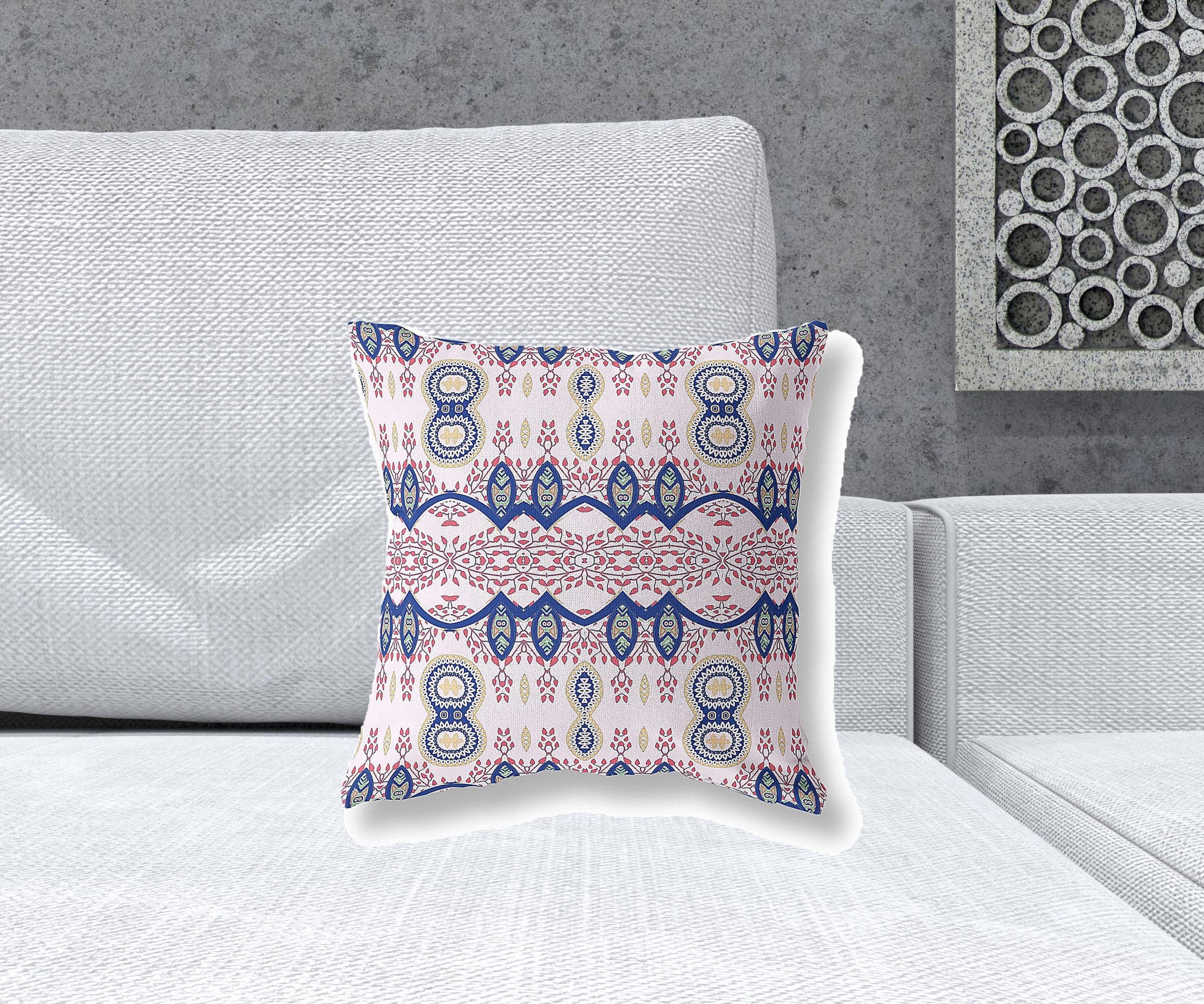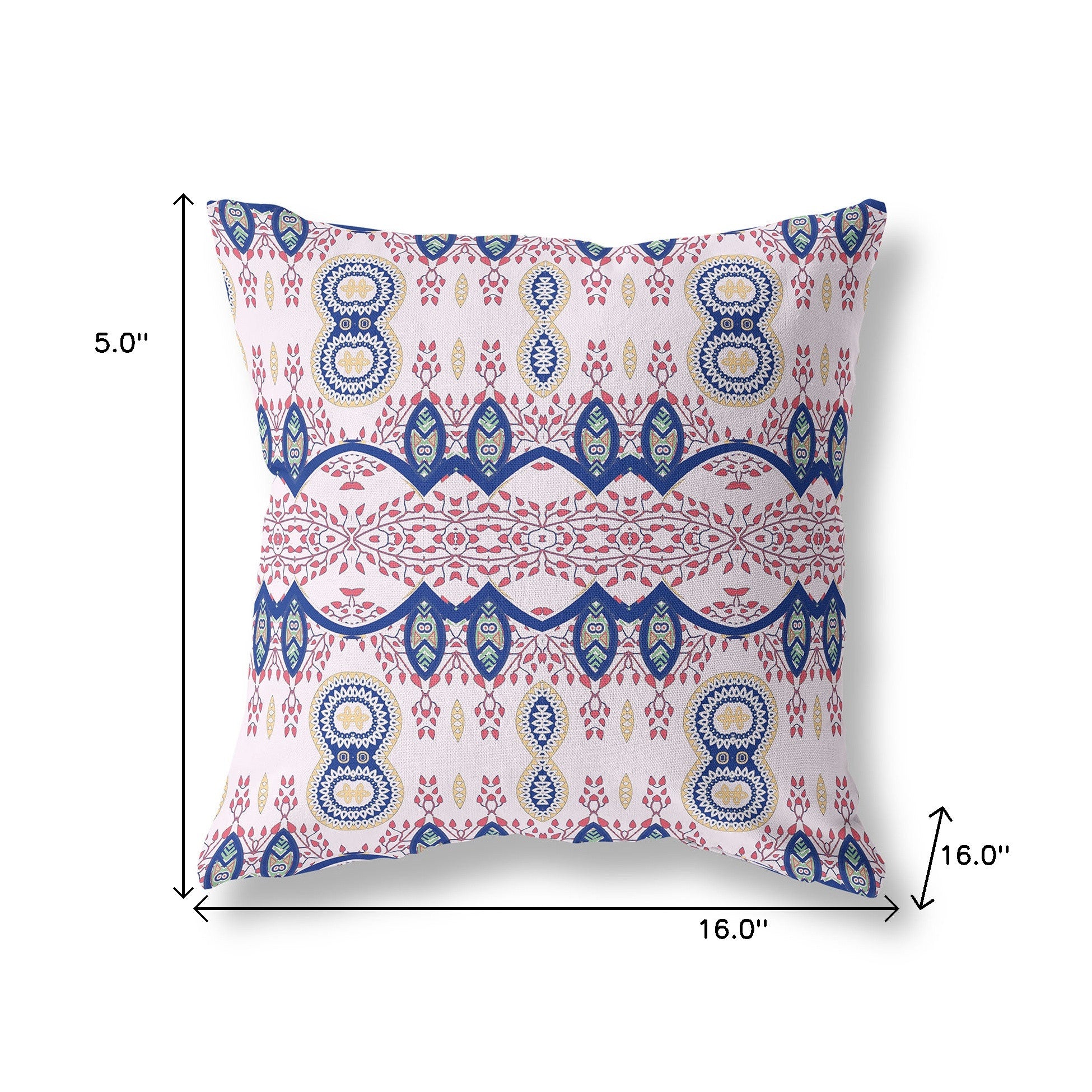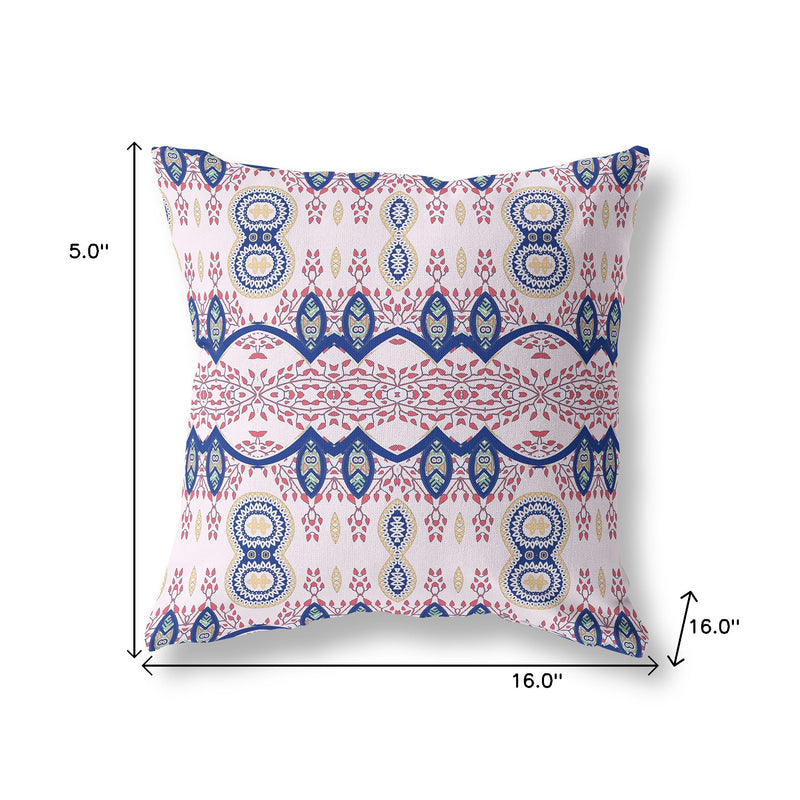 16" X 16" White And Blue Blown Seam Paisley Indoor Outdoor Throw Pillow
