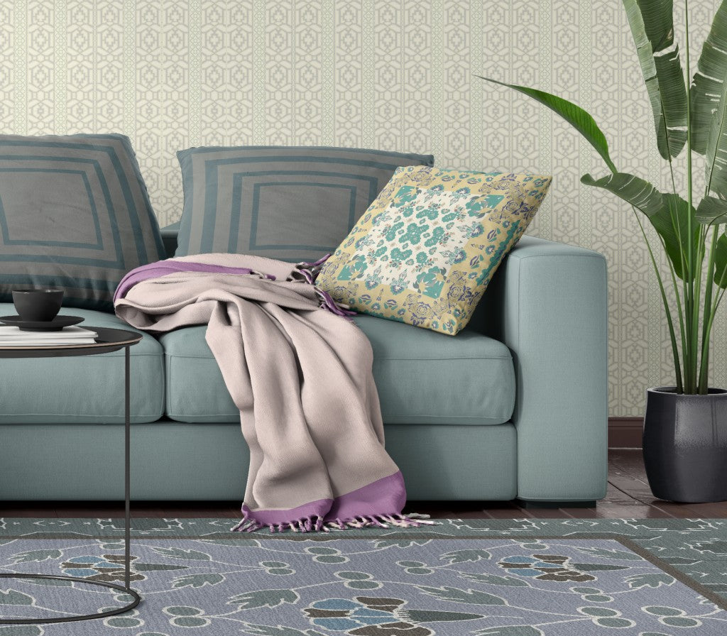 16" X 16" Yellow And White Floral Blown Seam Suede Throw Pillow