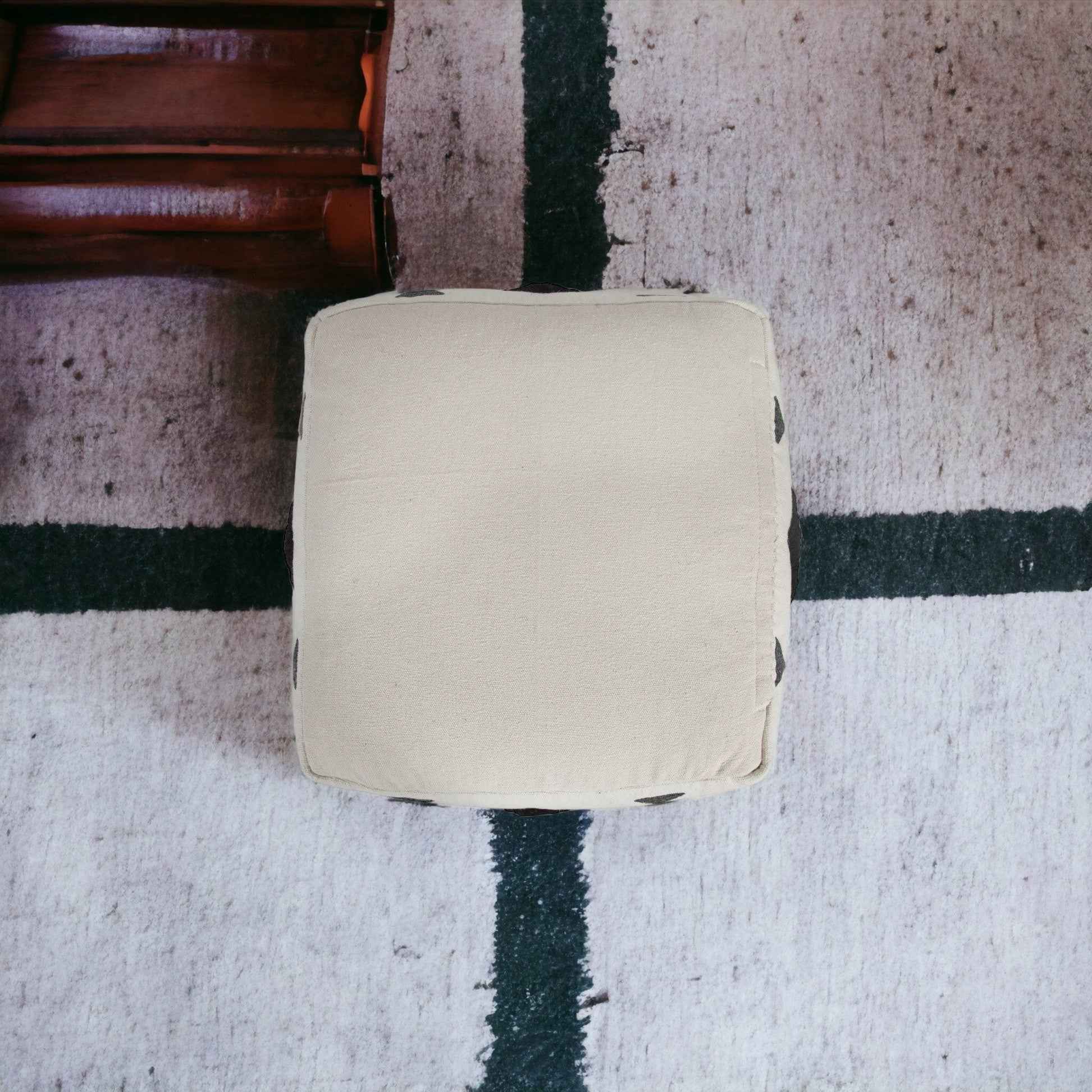 18" White Cotton Geometric Pouf Ottoman Перейти к содержанию