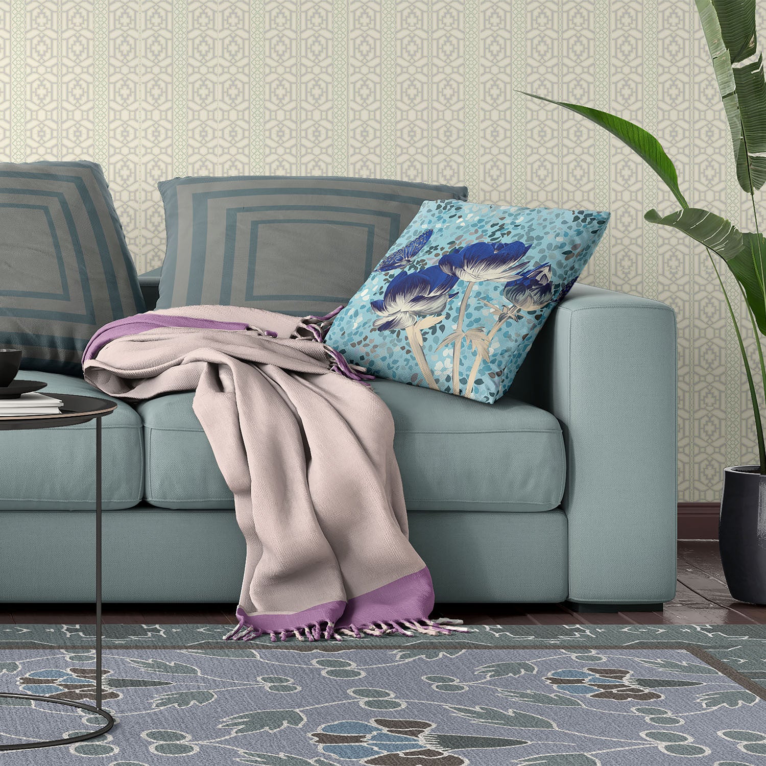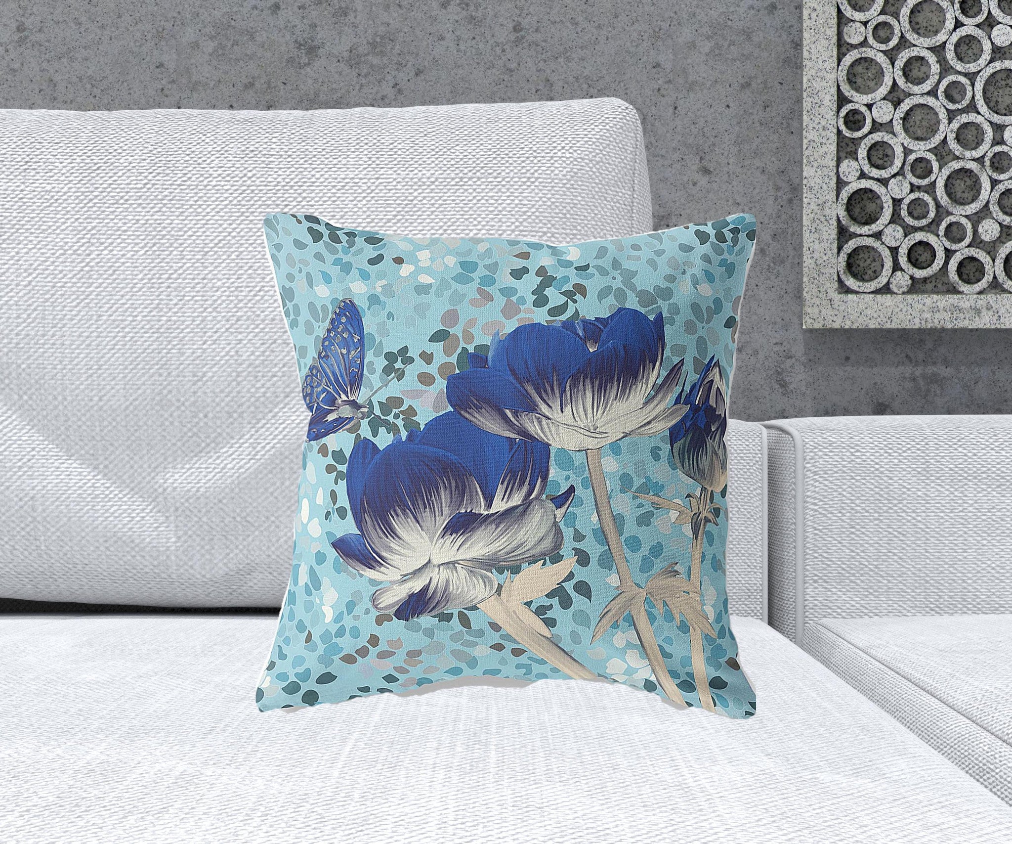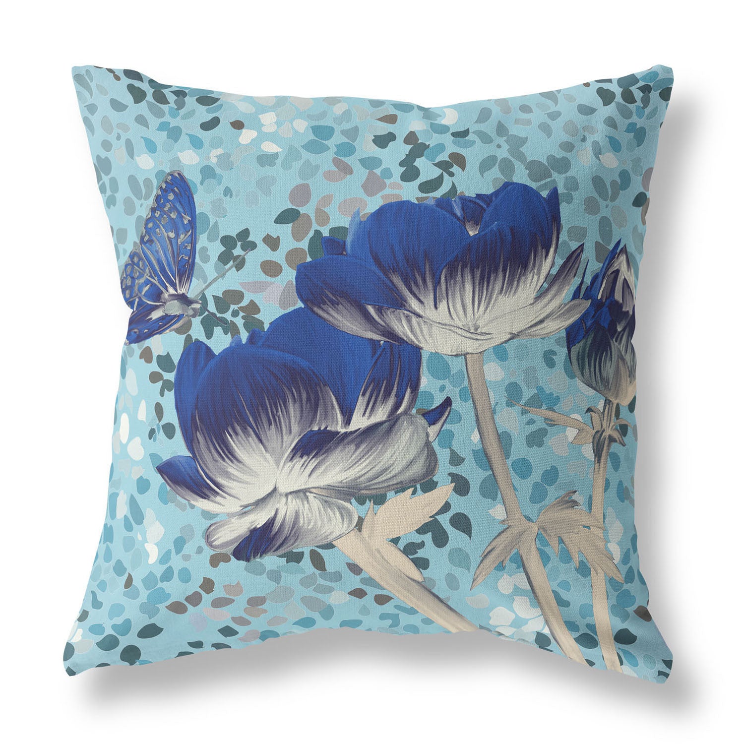18" x 18" Blue Butterfly Blown Seam Floral Indoor Outdoor Throw Pillow Перейти к содержанию