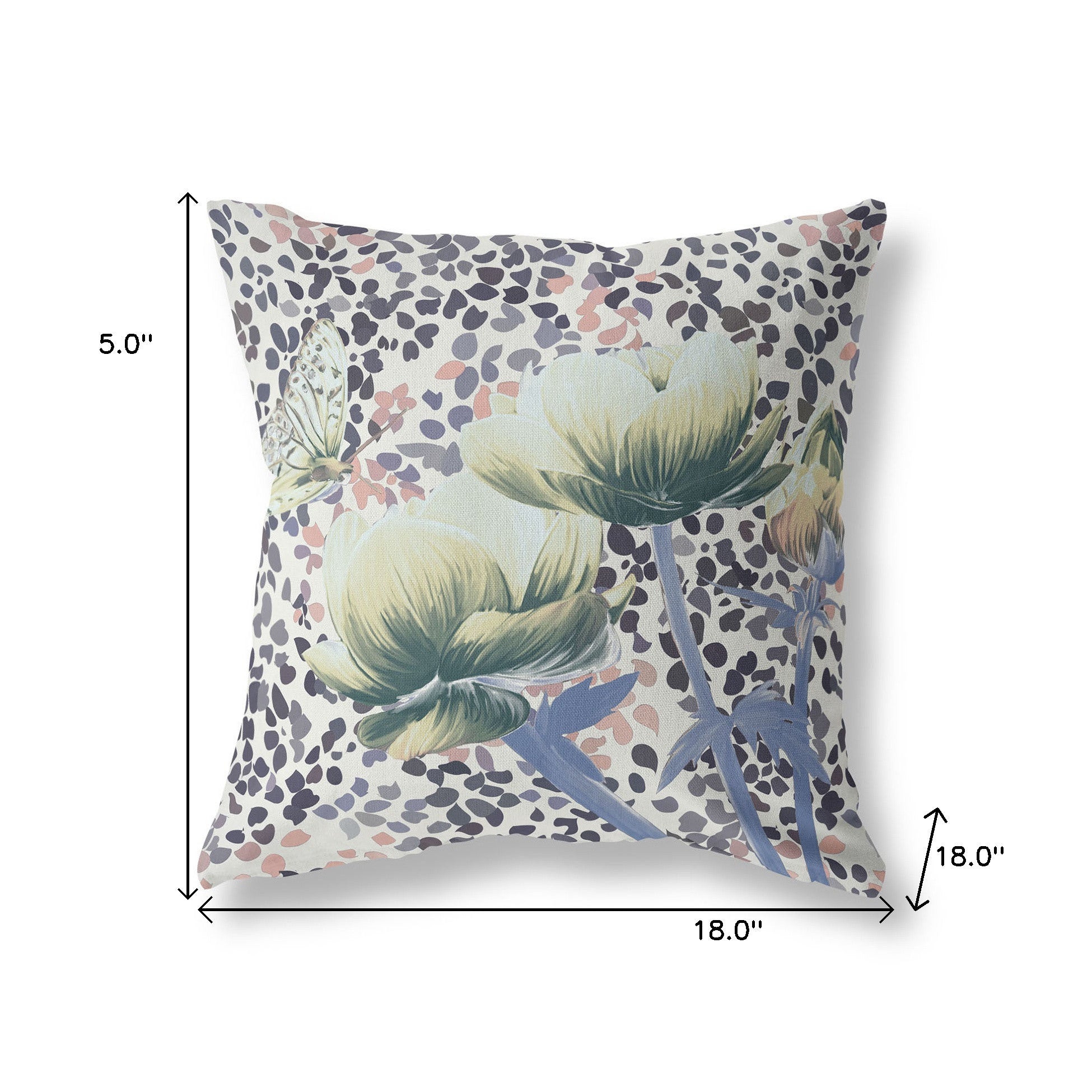 18" x 18" Green and Black Butterfly Blown Seam Floral Indoor Outdoor Throw Pillow
