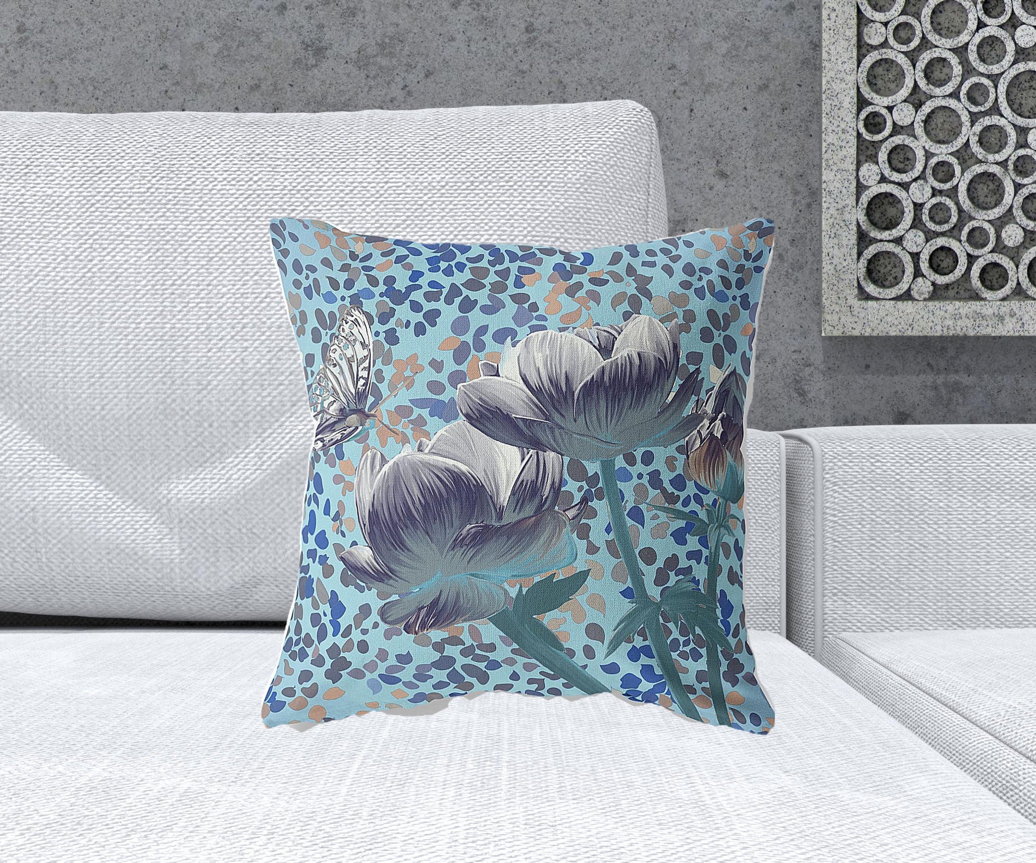 18" x 18" Indigo Butterfly Blown Seam Floral Indoor Outdoor Throw Pillow