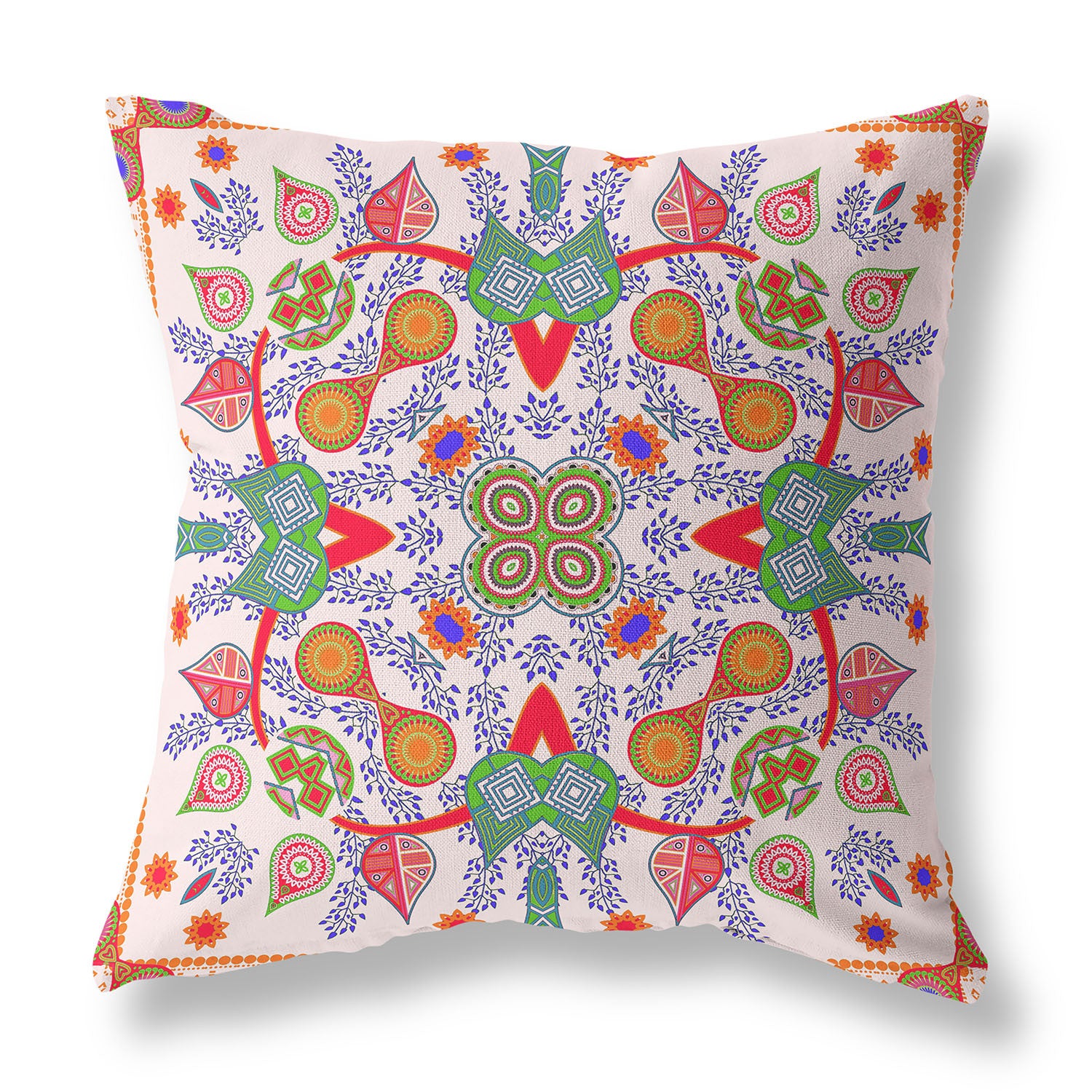 18" X 18" White And Orange Blown Seam Floral Indoor Outdoor Throw Pillow